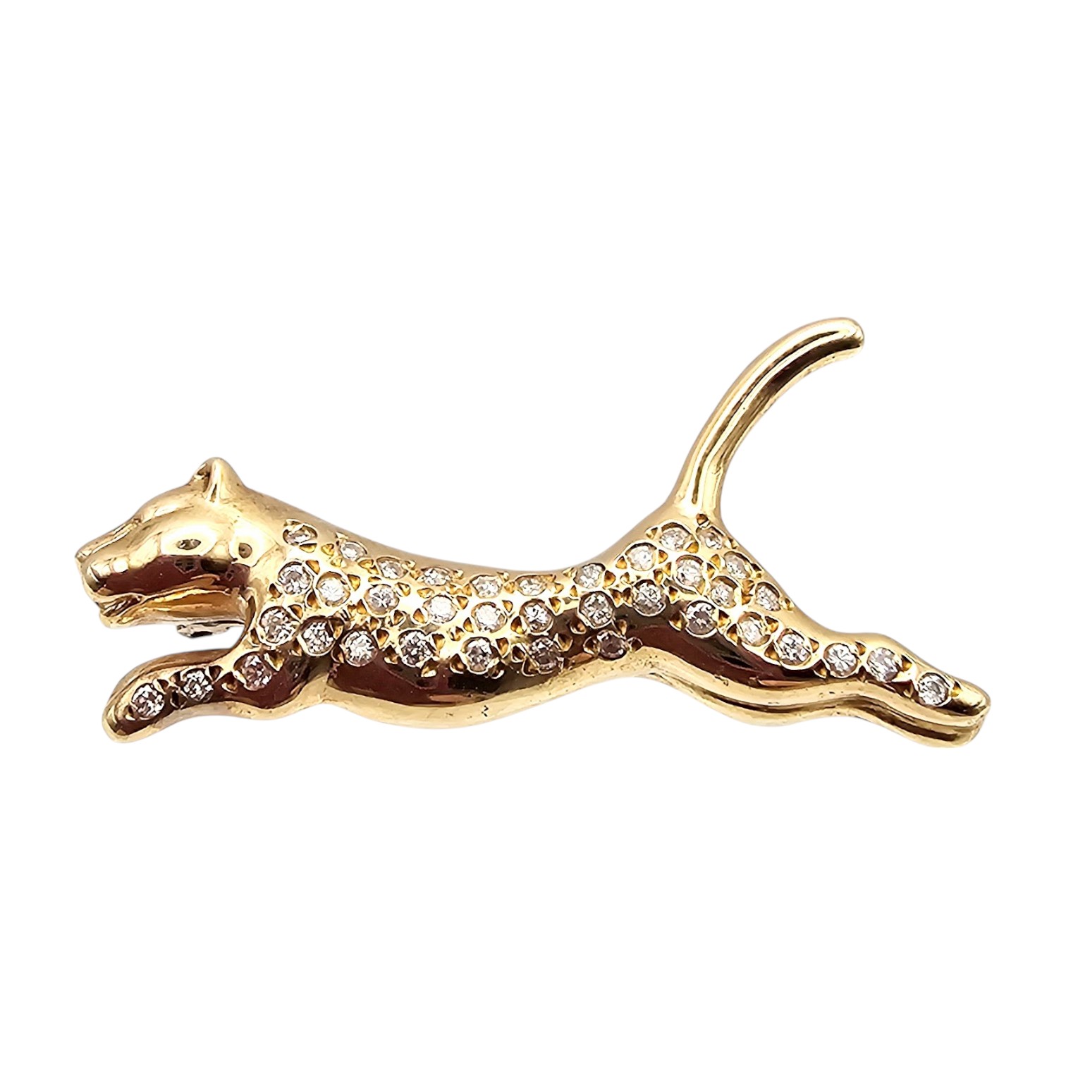 14K Gold Diamond Panther Big Cat Brooch 8.4 G