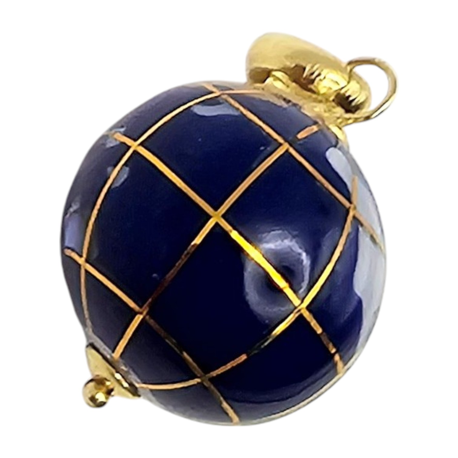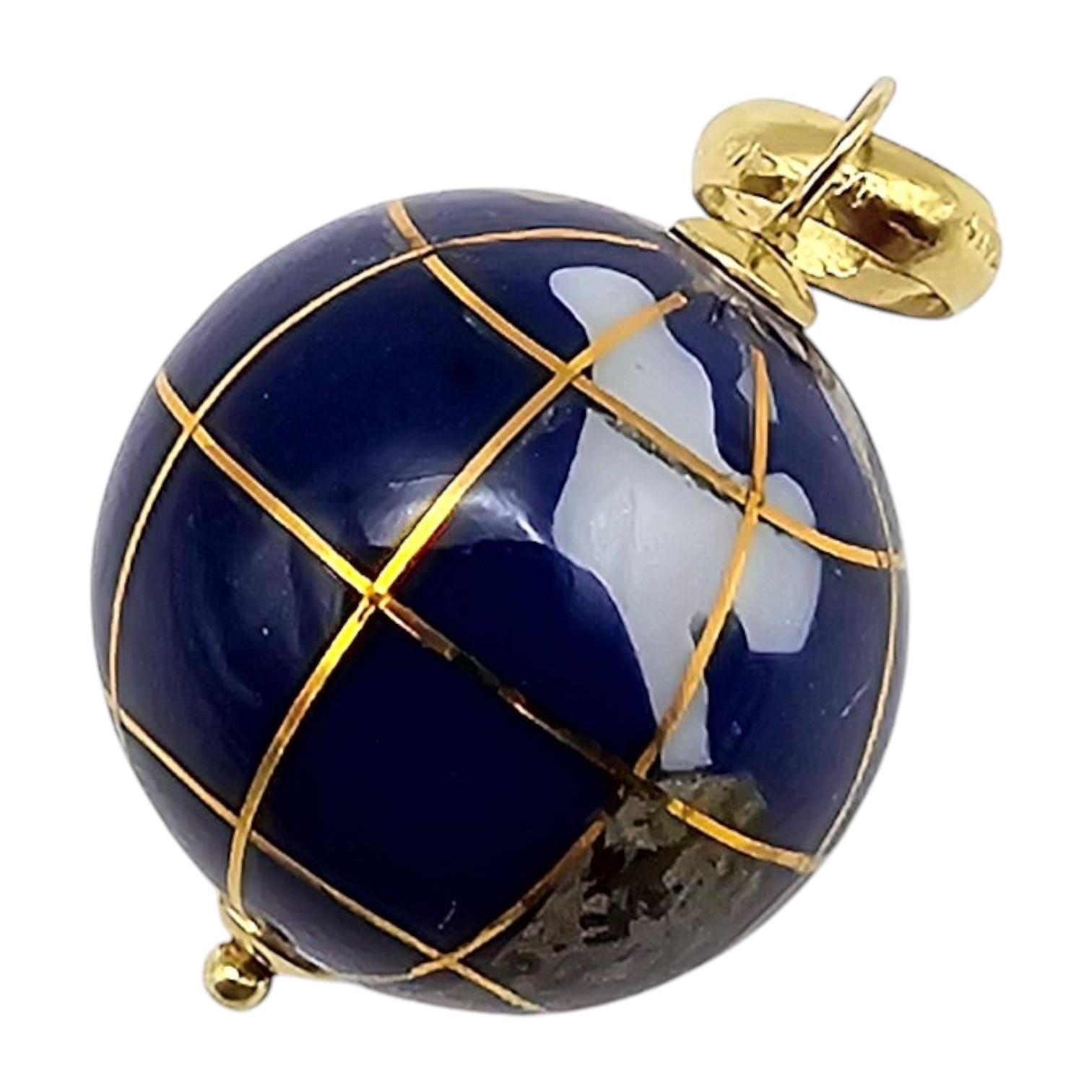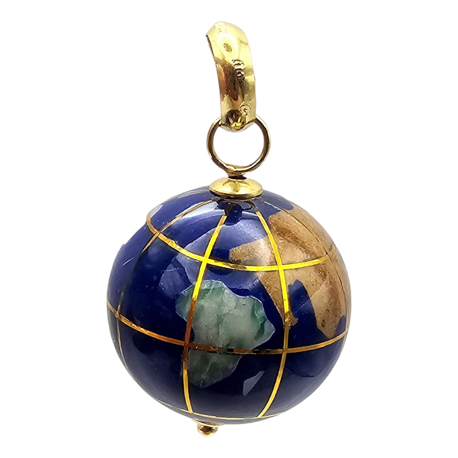 Italy DL? 14K Gold Lapis Agate Mother Of Pearl Abalone World Globe Pendant 3 G