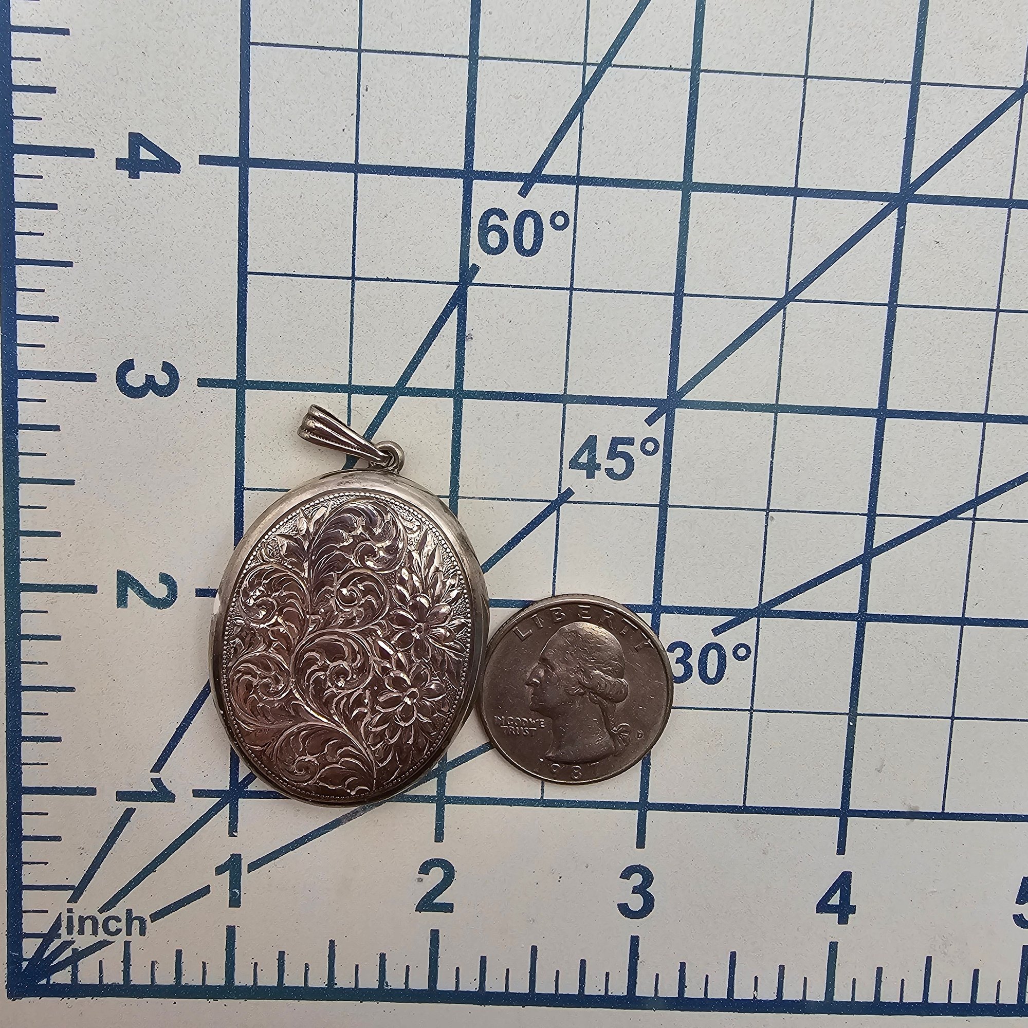 8 Sterling Silver Floral Etched Locket Pendant 16 G