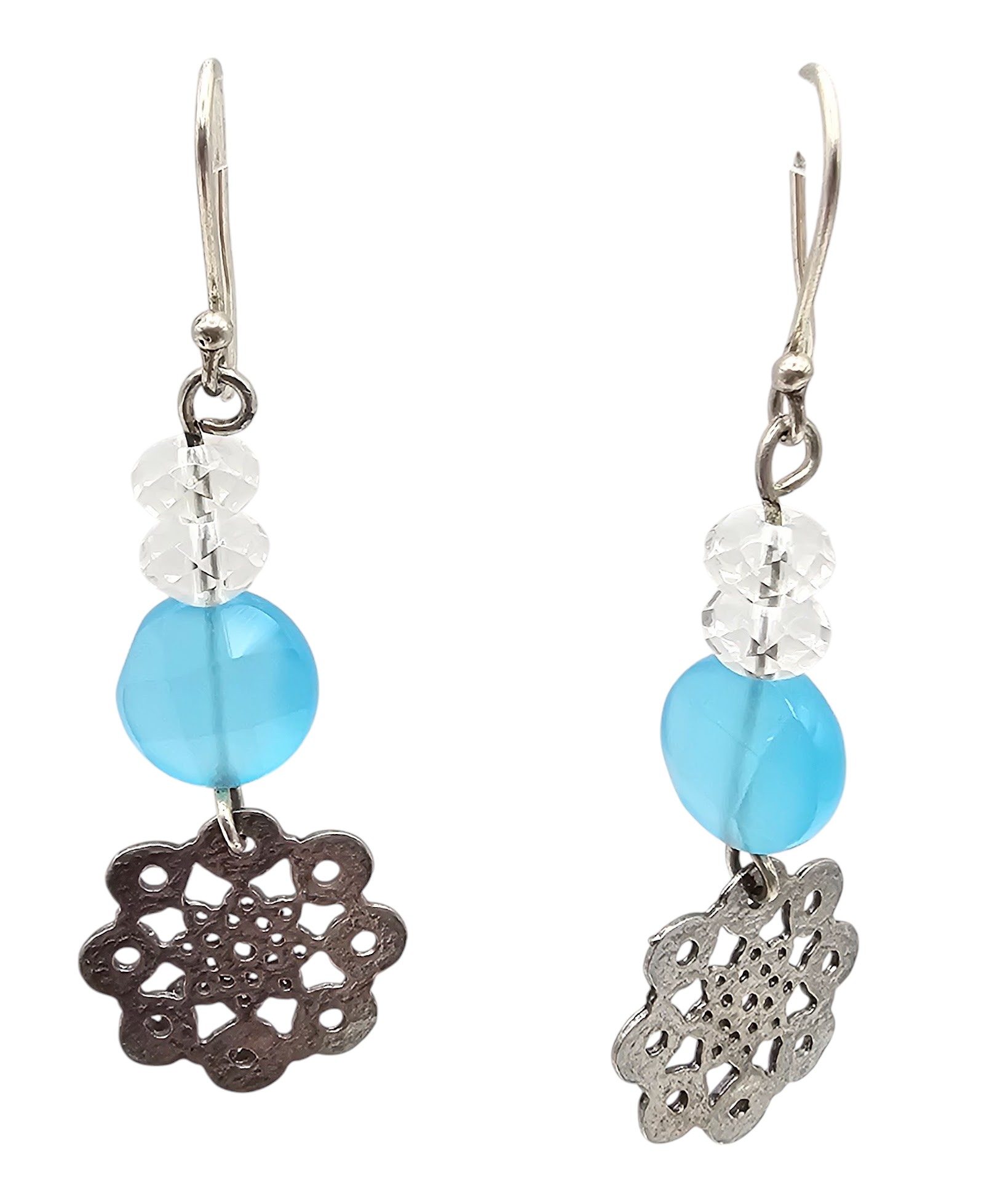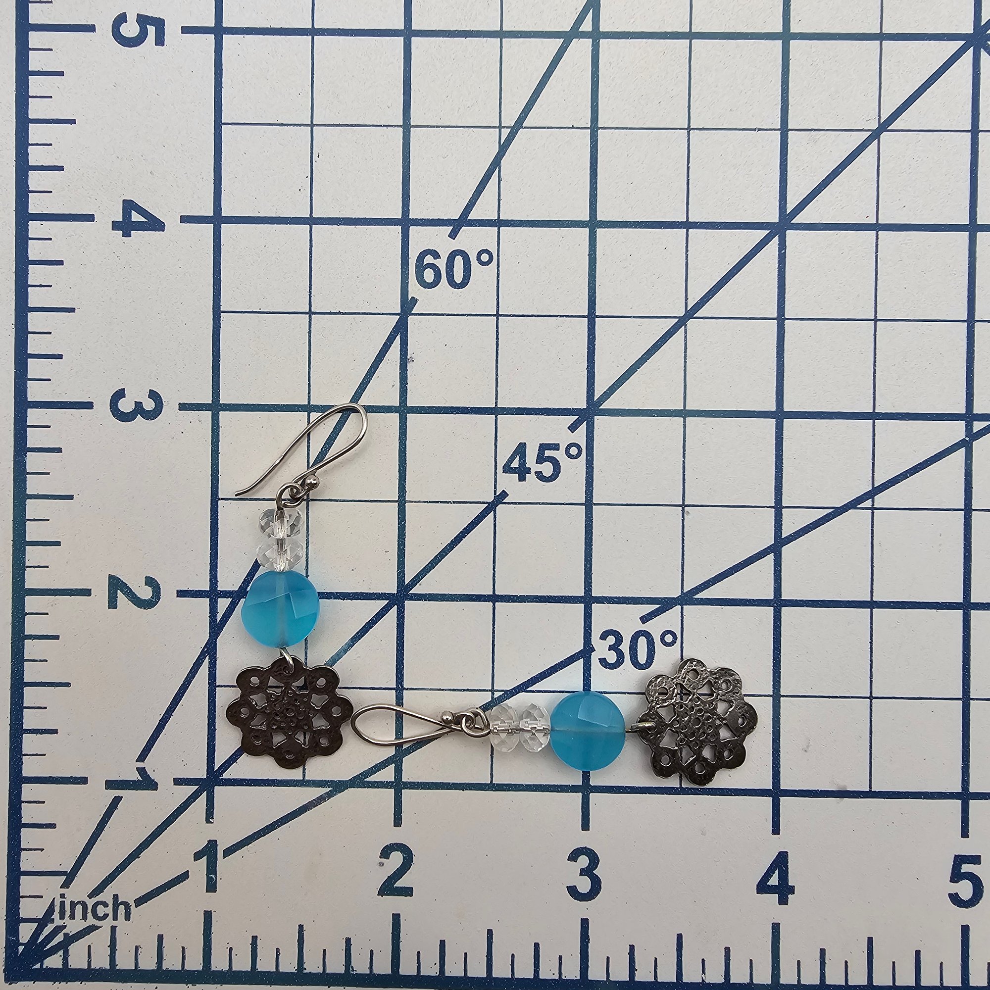 Blue Bead Sterling Silver Snowflake Drop Dangle Earrings 4.9 G