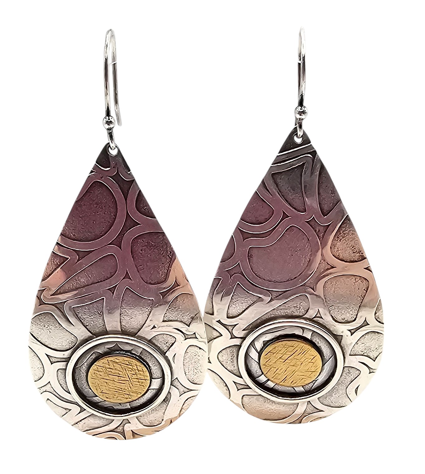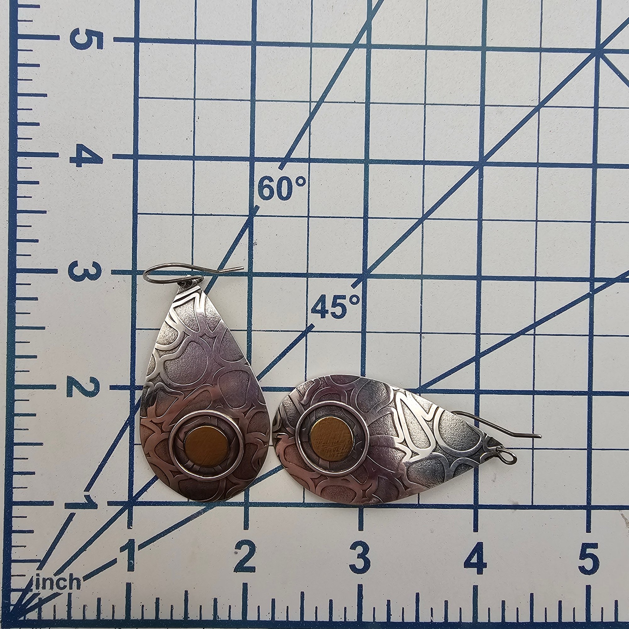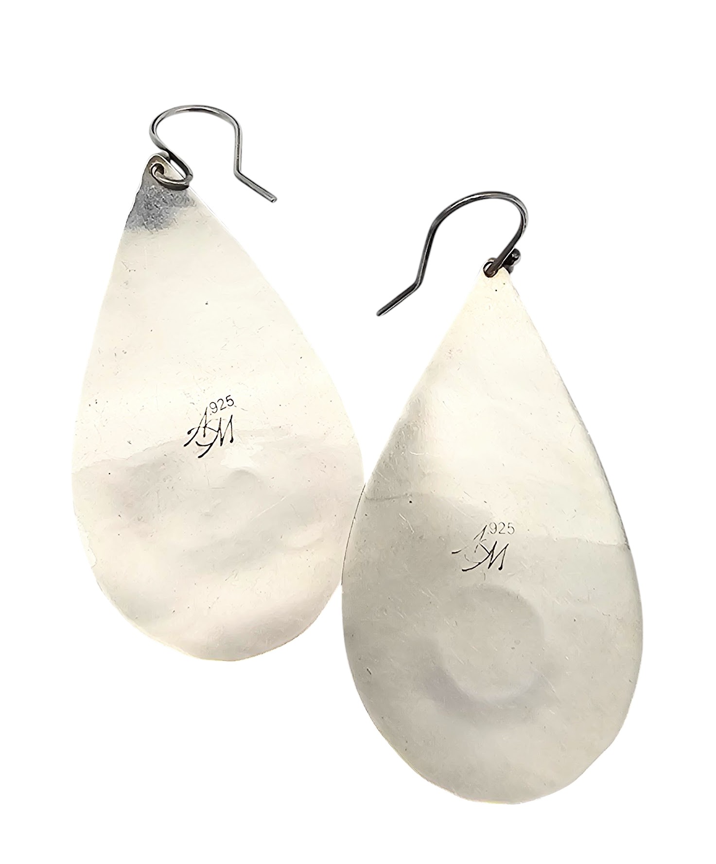 AM artist signed Sterling Silver Brass Drop Dangle Earrings 12 G