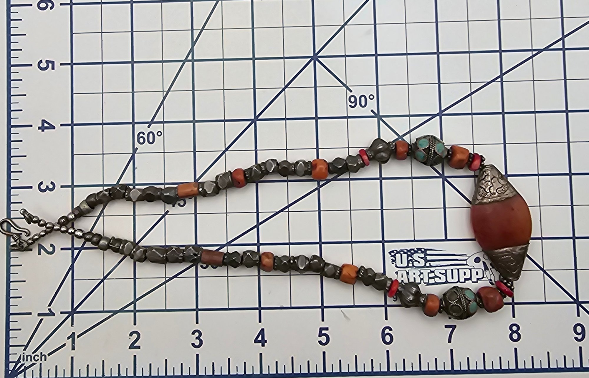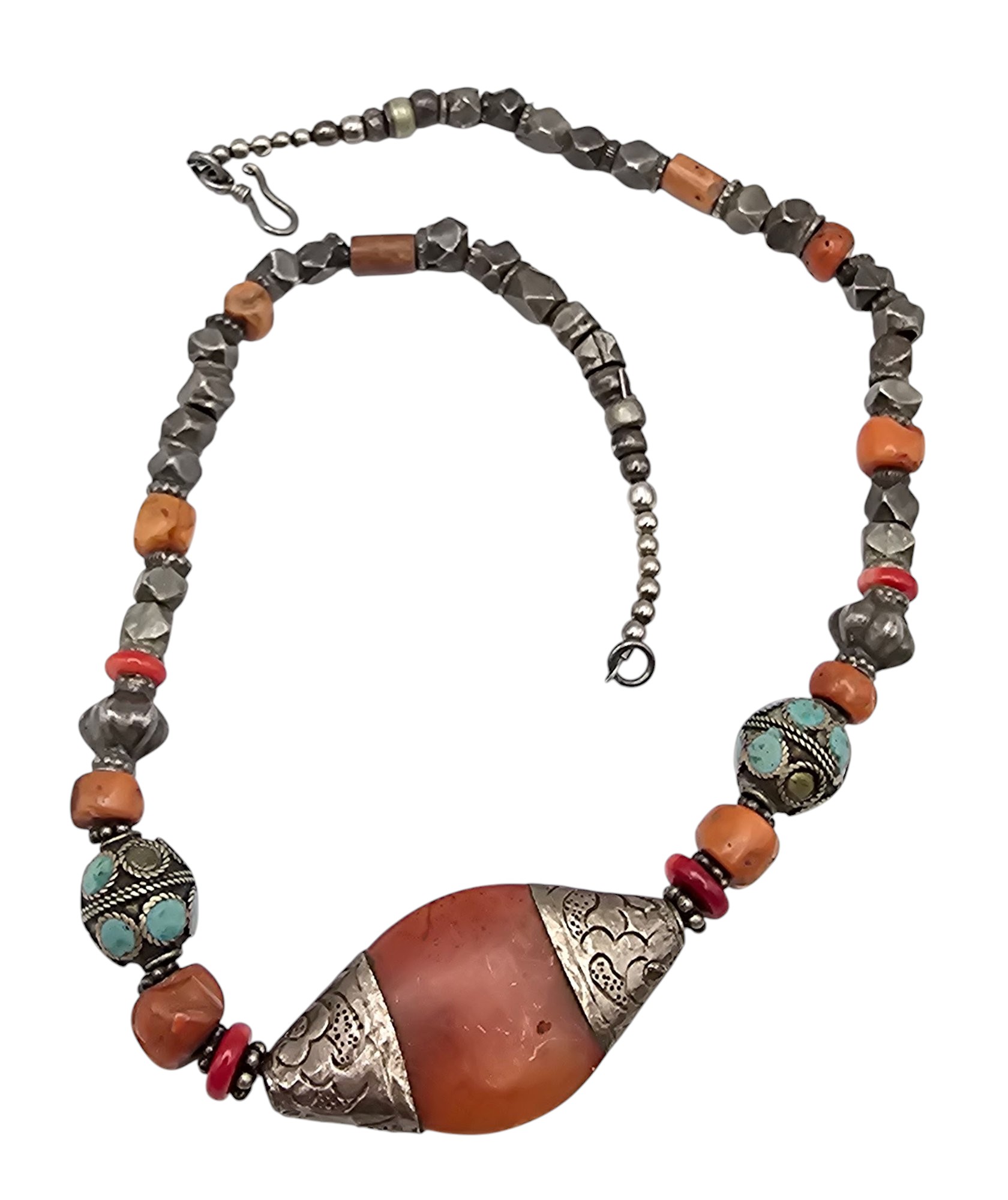 Vintage india Carnelian coral Turquoise Sterling Silver Necklace 64.9 G