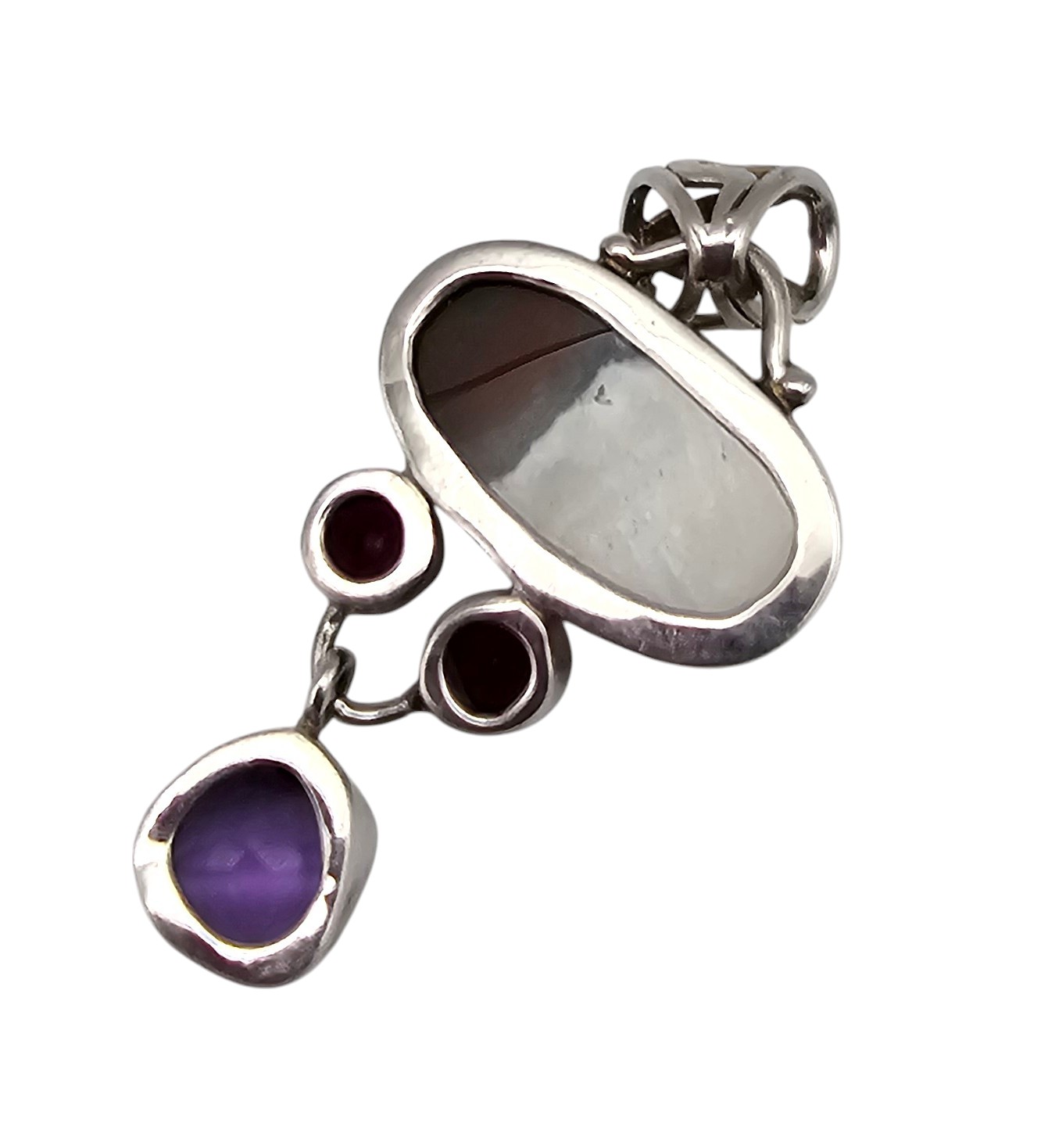 Amethyst Quartz Garnet Sterling Silver Pendant 11.8 G