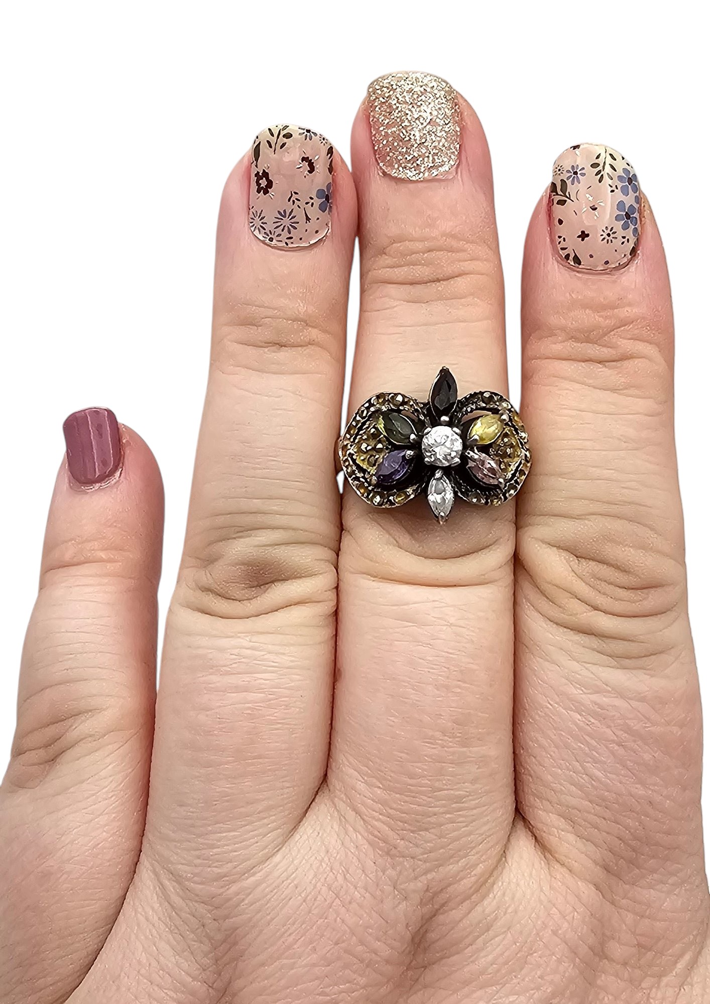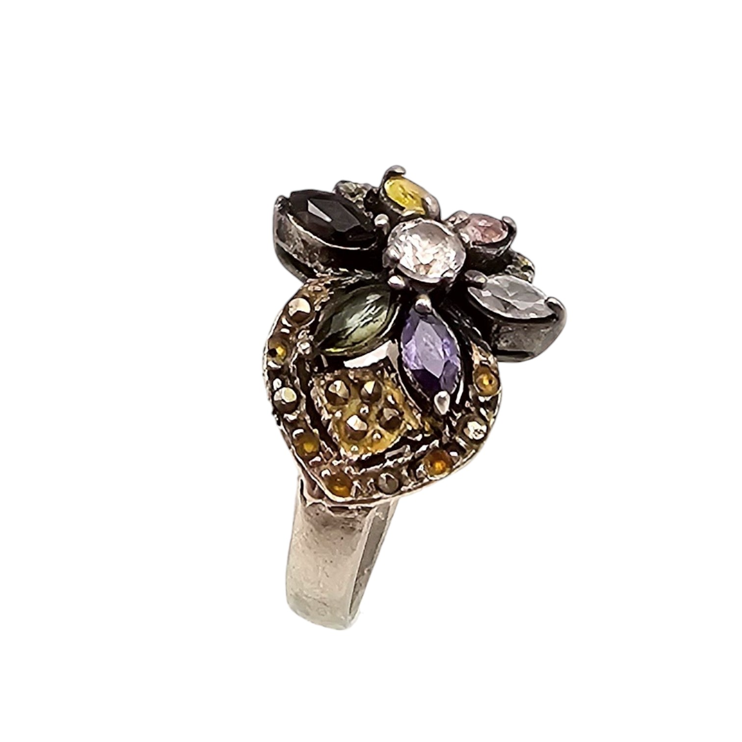 M Multi Gemstone Sterling Silver Cocktail Ring Size 8.25 5.3 G