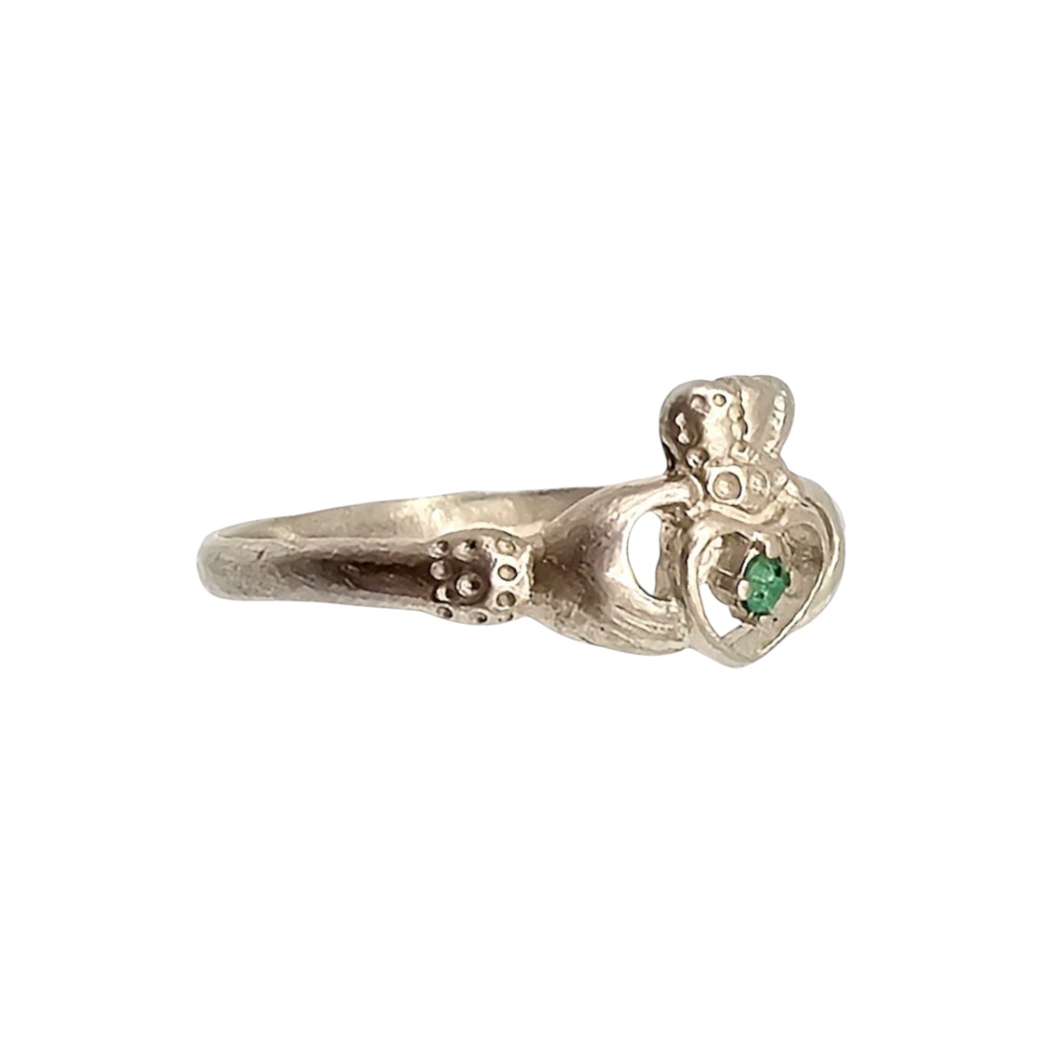 Rhinestone Sterling Silver Claddagh Ring Size 9.5 1.9 G