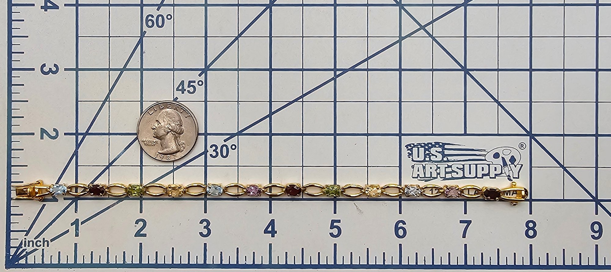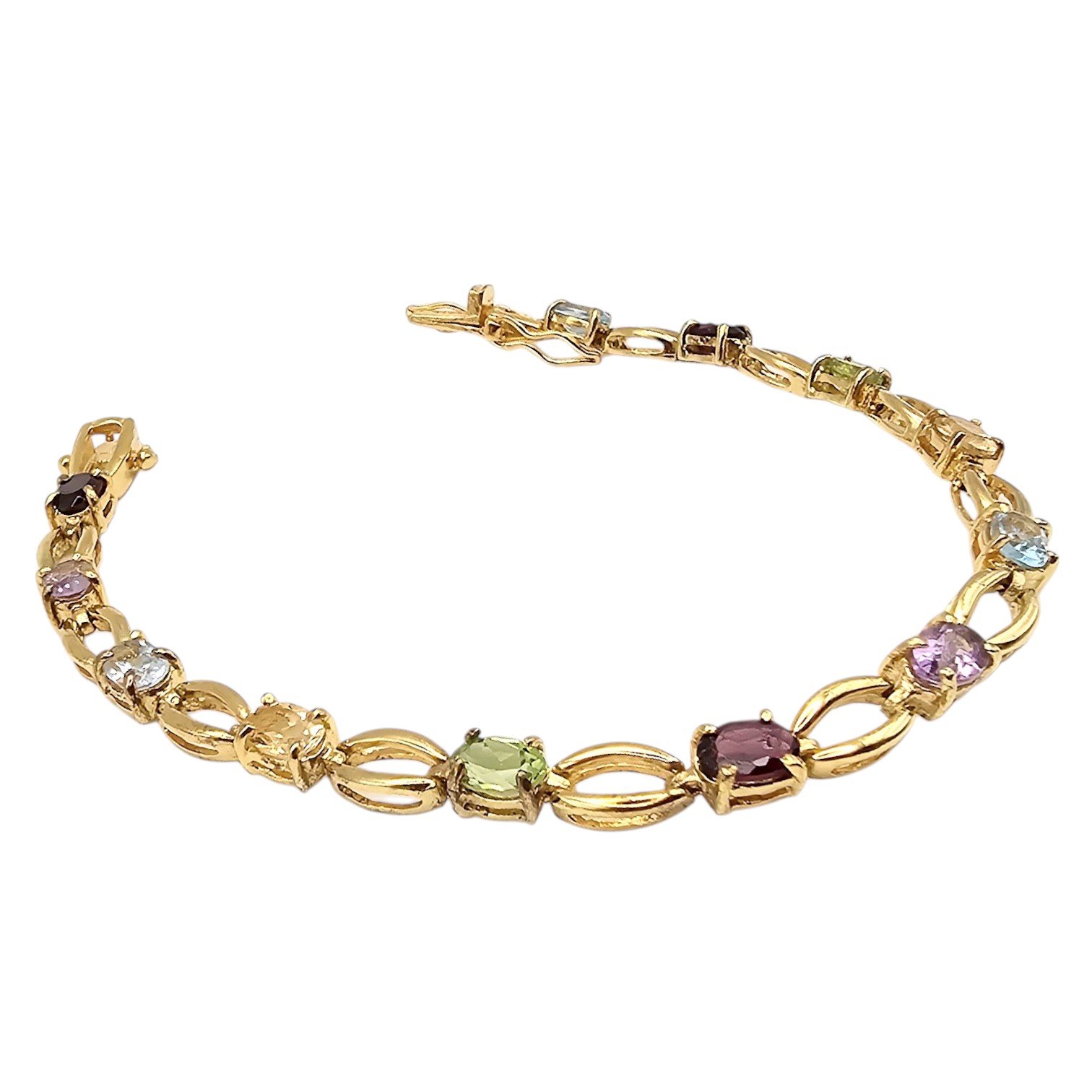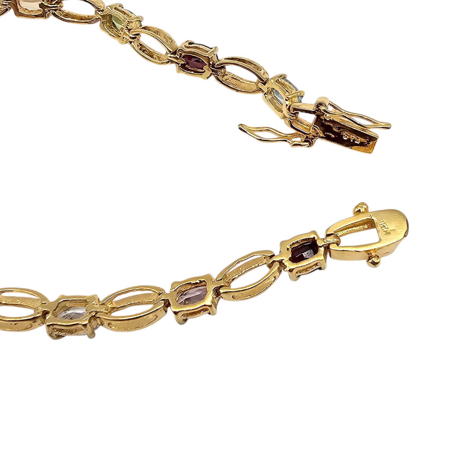 FAS Multi Gemstone Gold Over Sterling Silver Tennis Bracelet 10.6 G