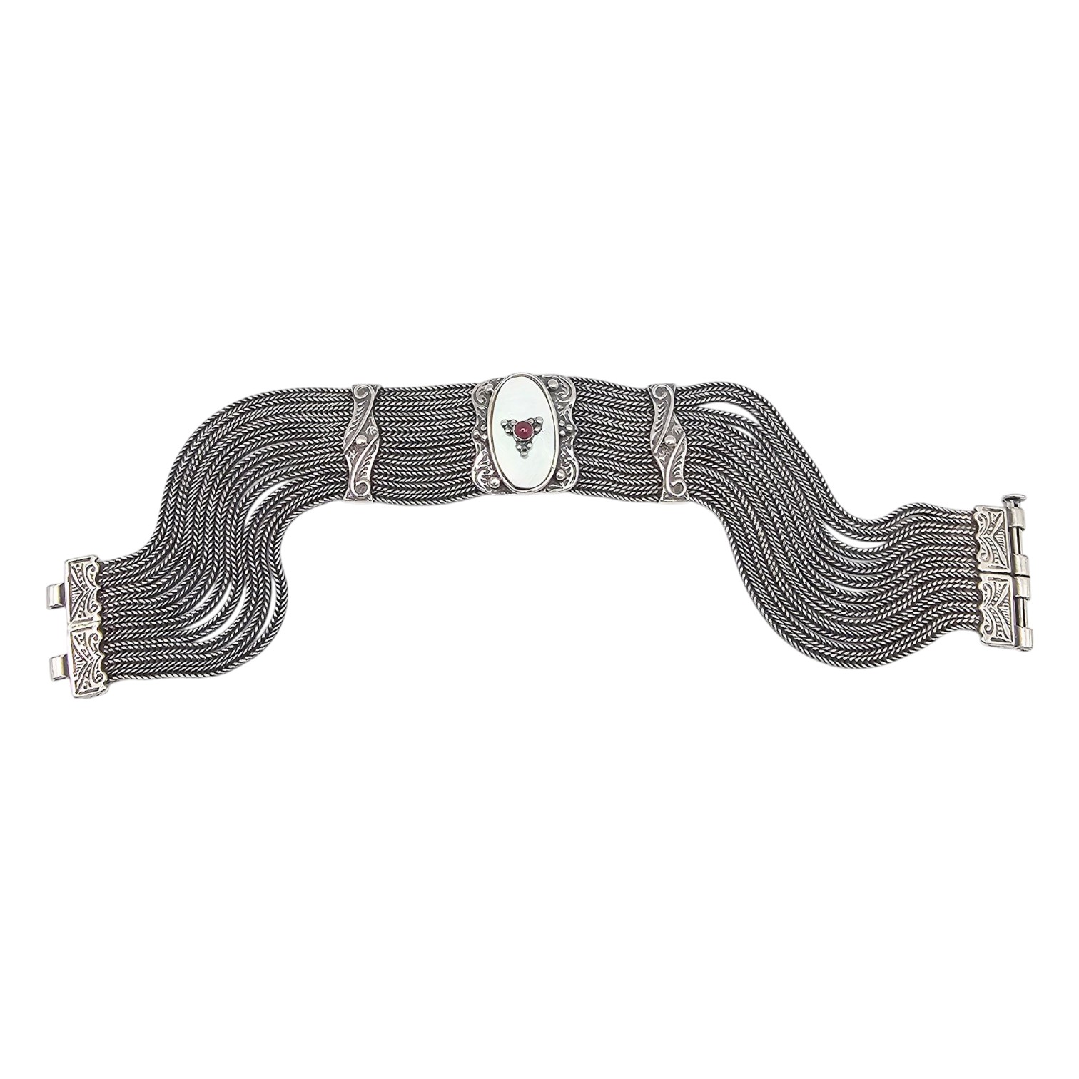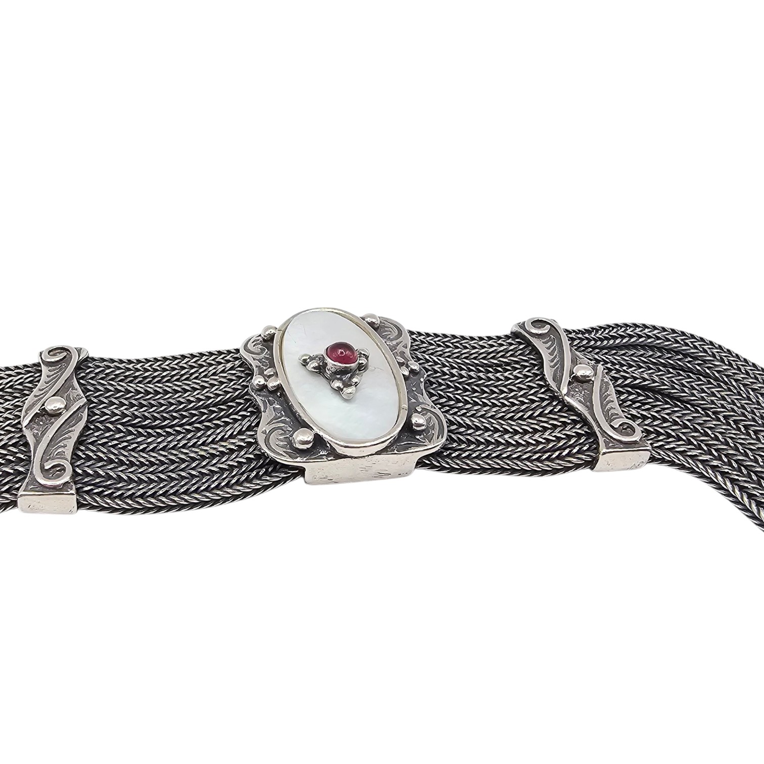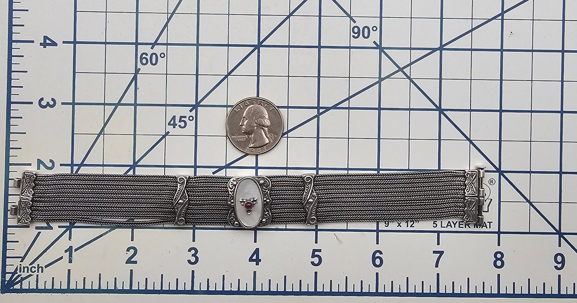 Vintage Mother Of Pearl Amethyst Sterling Silver Multi Strand Bracelet 43.3 G
