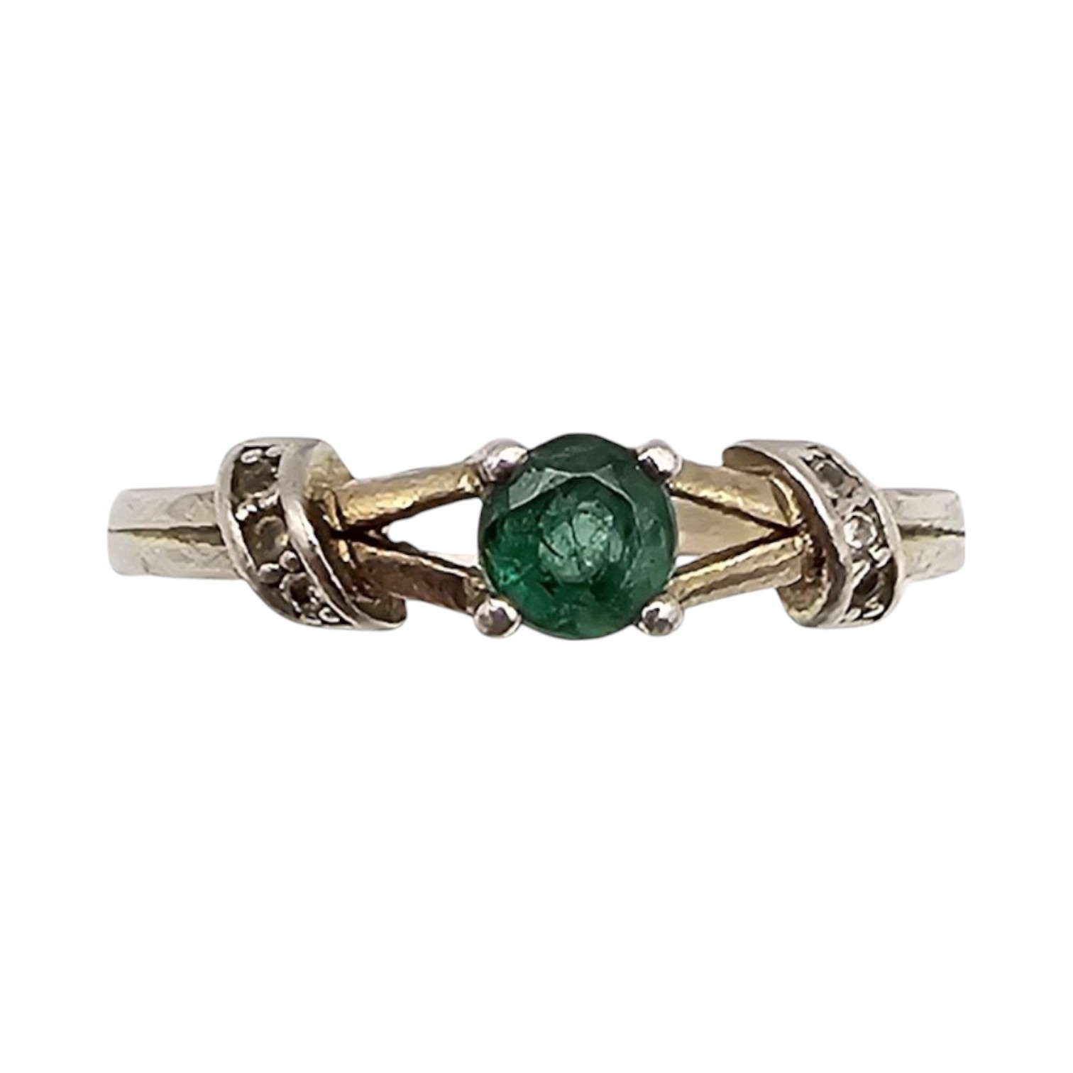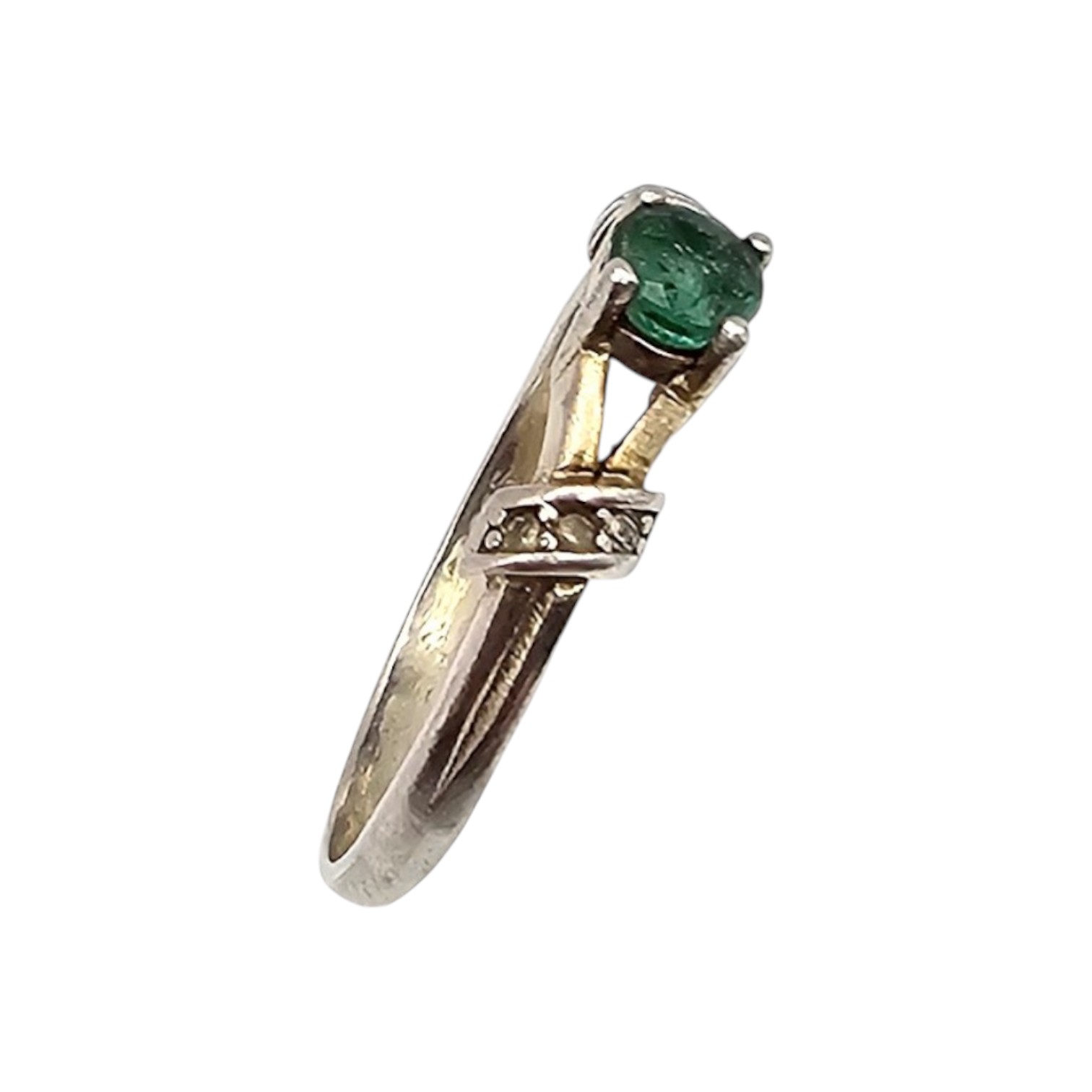 Emerald Sterling Silver Cocktail Ring Size 6.75 1.6 G