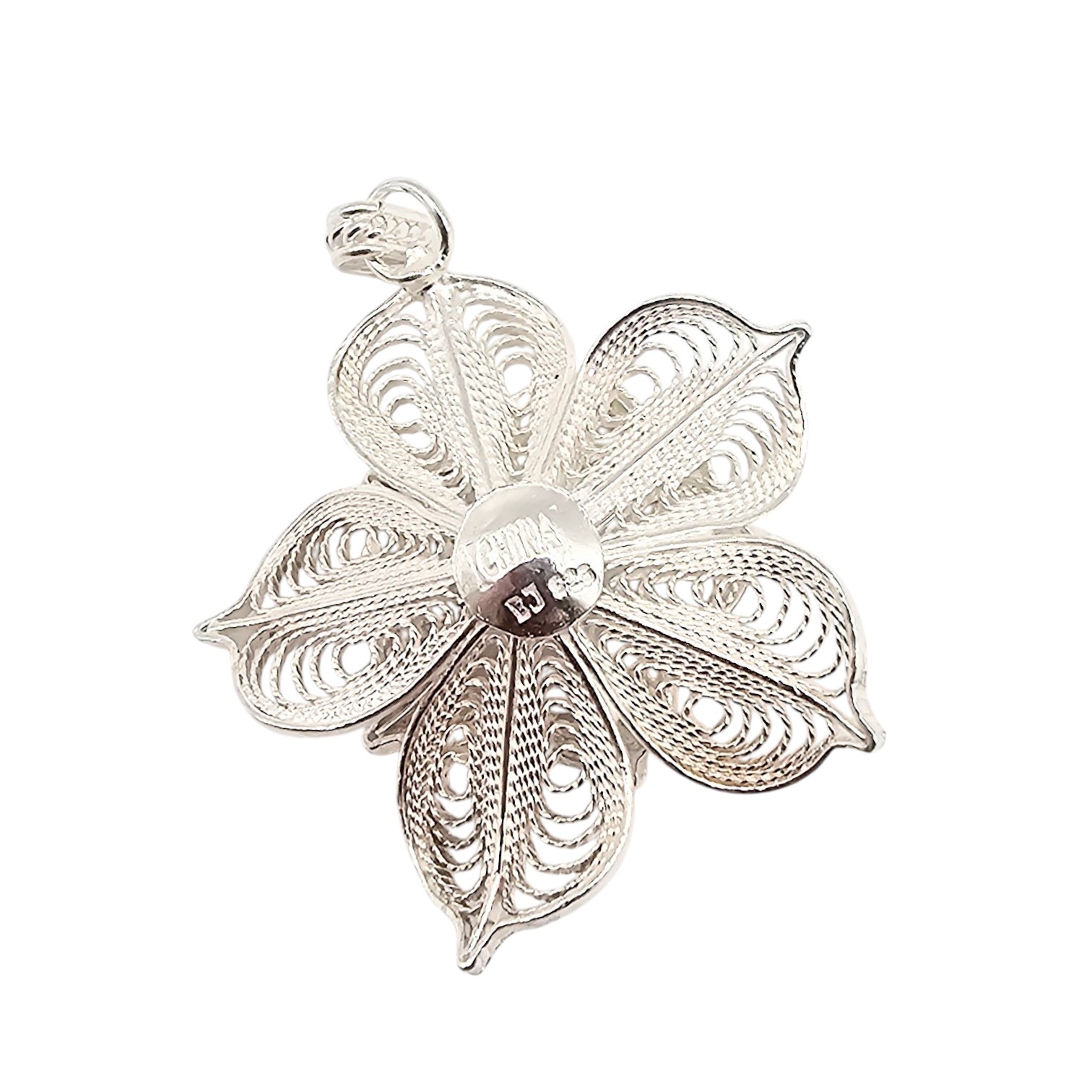 B J Sterling Silver Filigree Flower Pendant 4.9 G