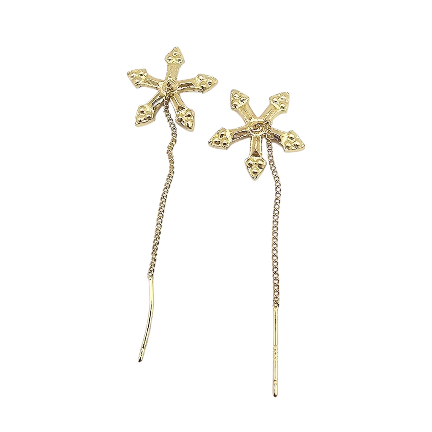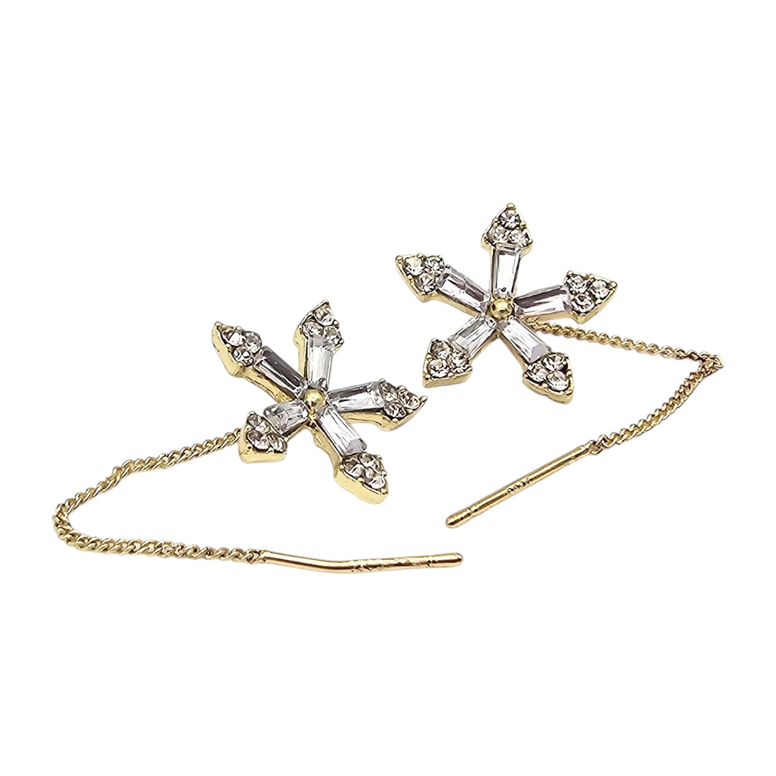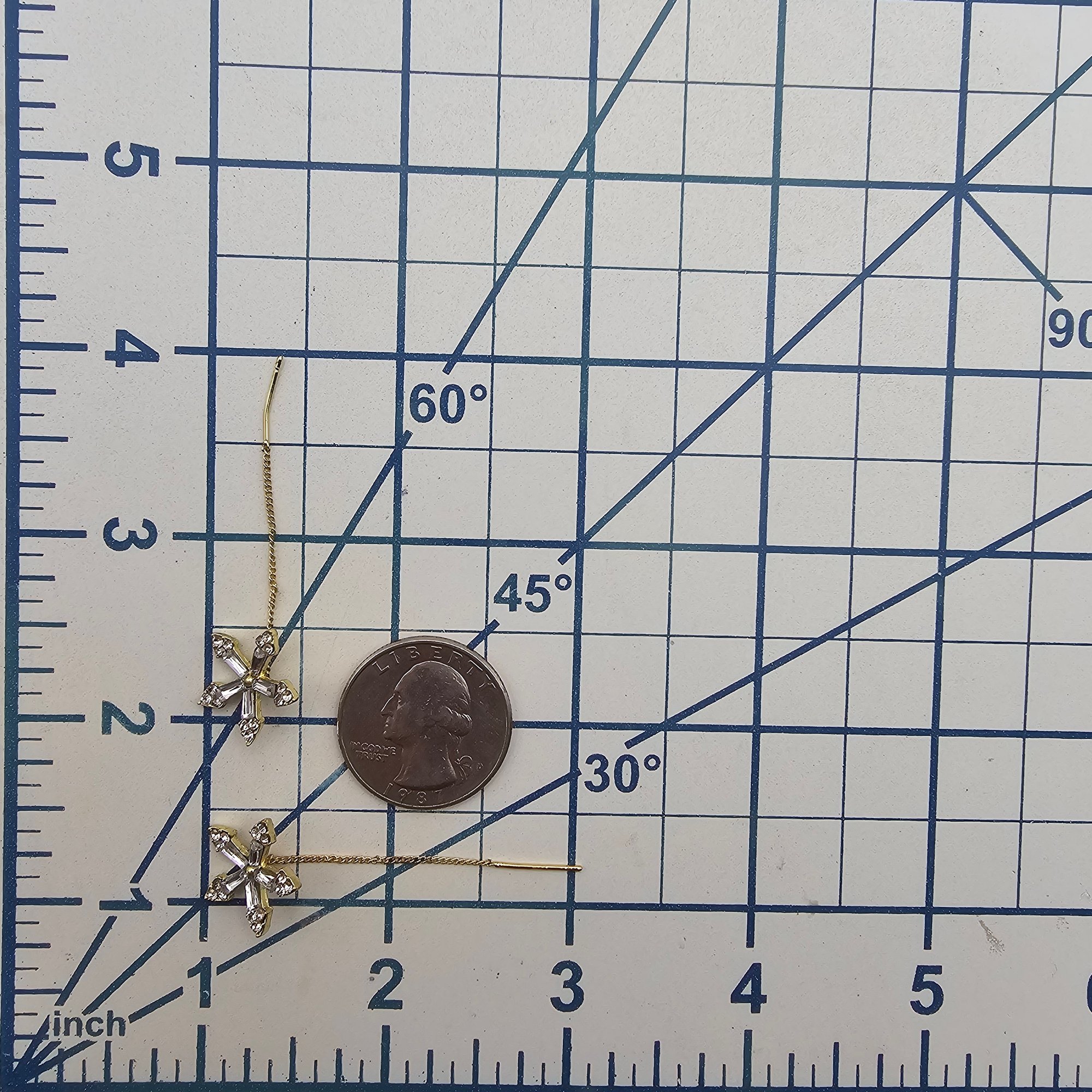 Rhinestone Gold Over Sterling Silver Threader Earrings 2.2 G
