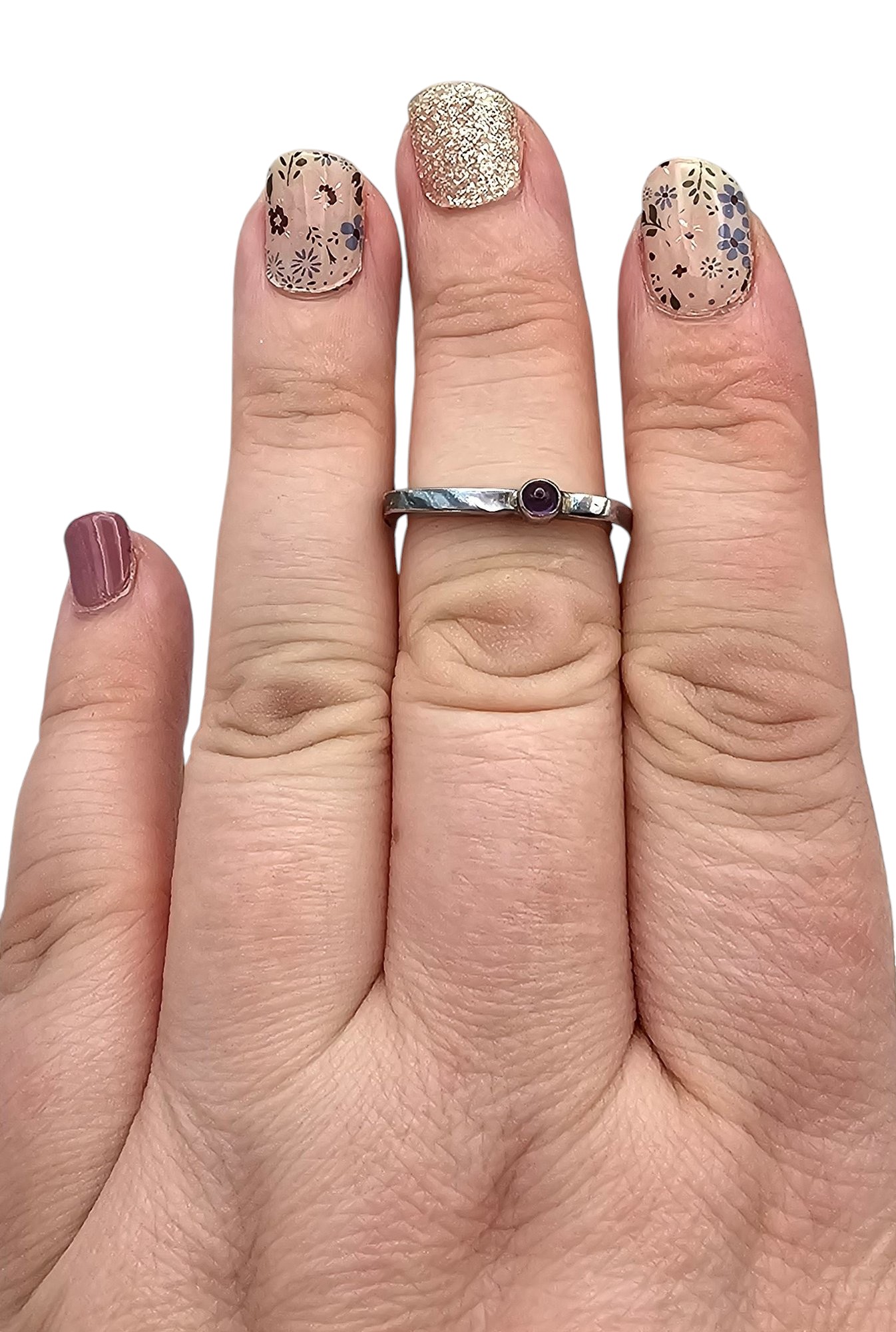 Signed Amethyst Sterling Silver Stackable Ring Size 7.25 3.2 G