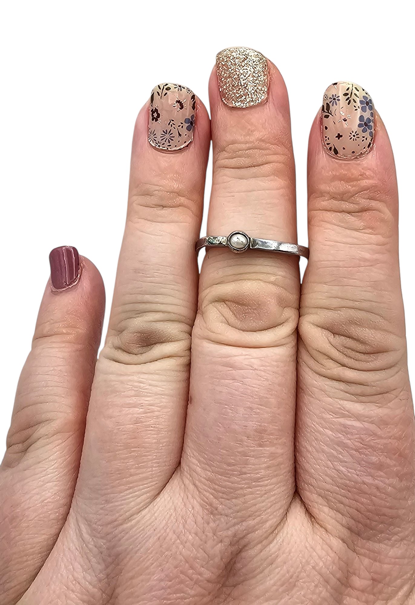 Signed Pearl Sterling Silver Stackable Ring Size 7.25 3.1 G