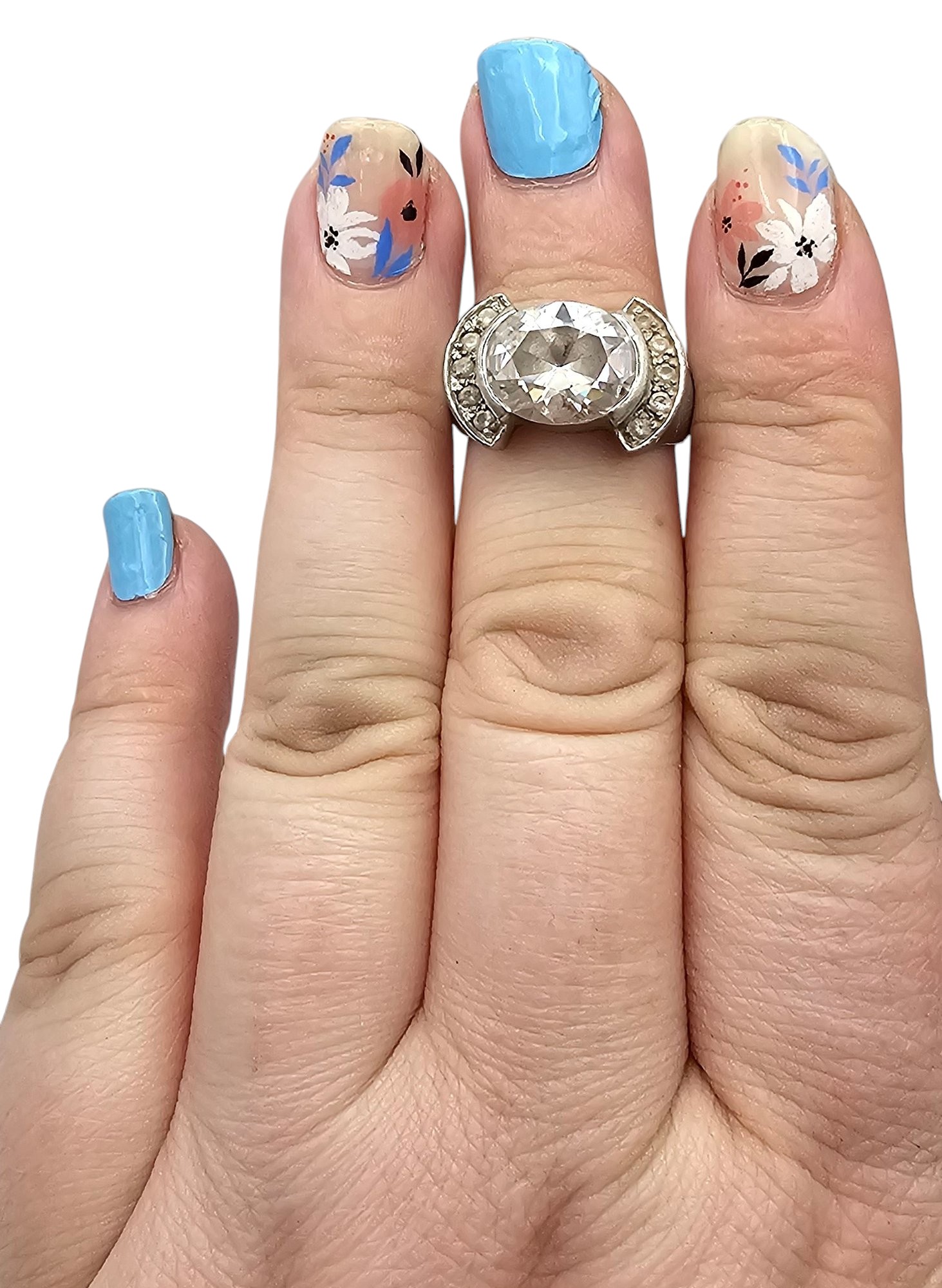 Rhinestone Sterling Silver Cocktail Ring Size 6.75 7.5 G