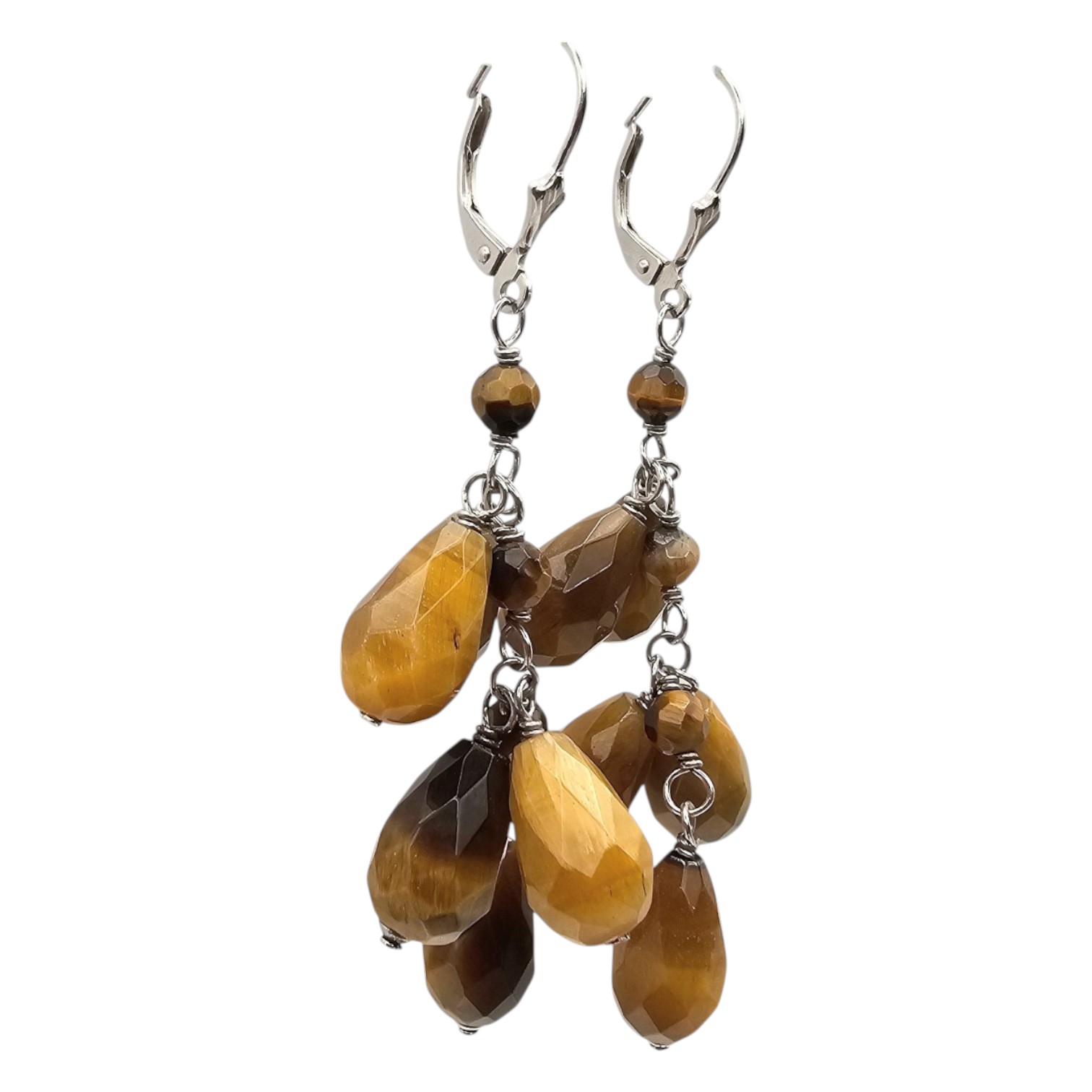 Tiger’s Eye Sterling Silver Drop Dangle Earrings 12.5 G