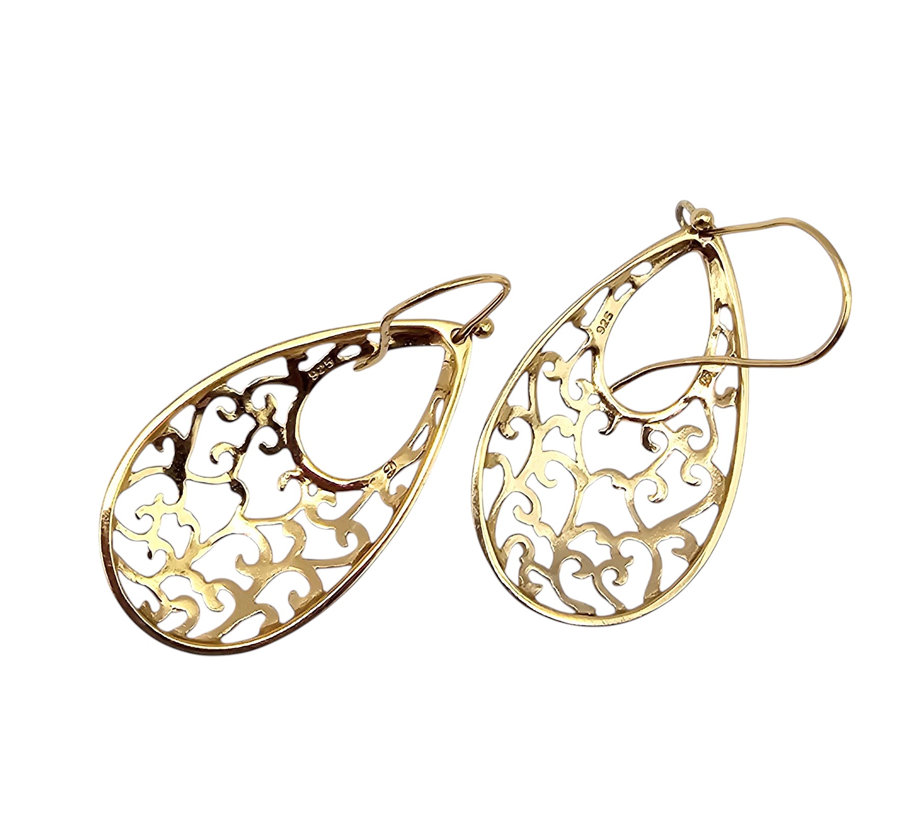 D Gold Over Sterling Silver Drop Dangle Earrings 2.5 G