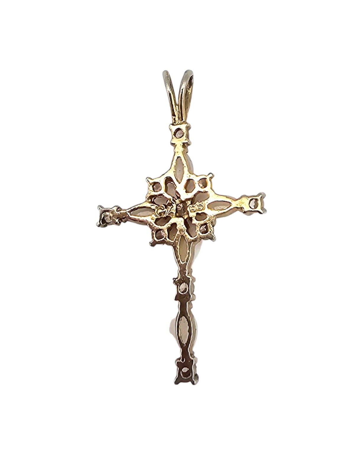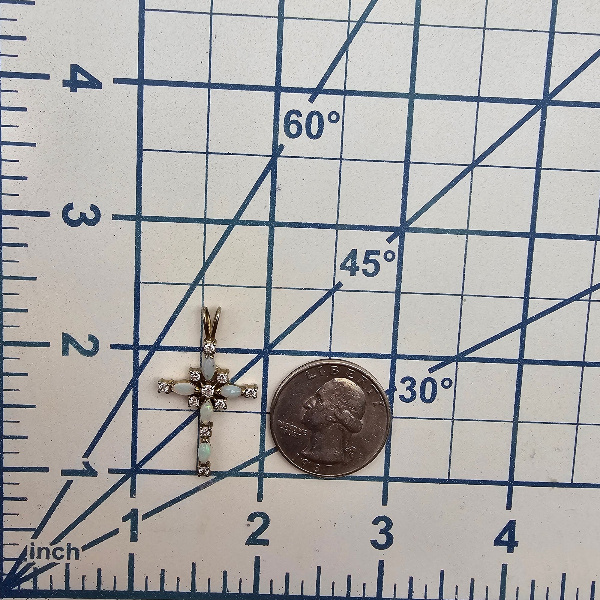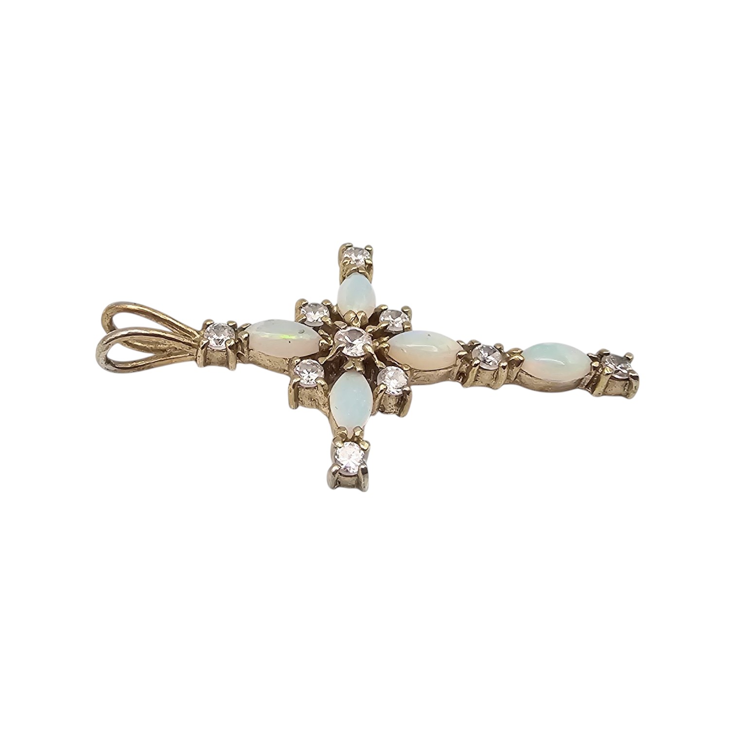 Cubic Zirconia Opal Sterling Silver Cross Pendant 1.8 G