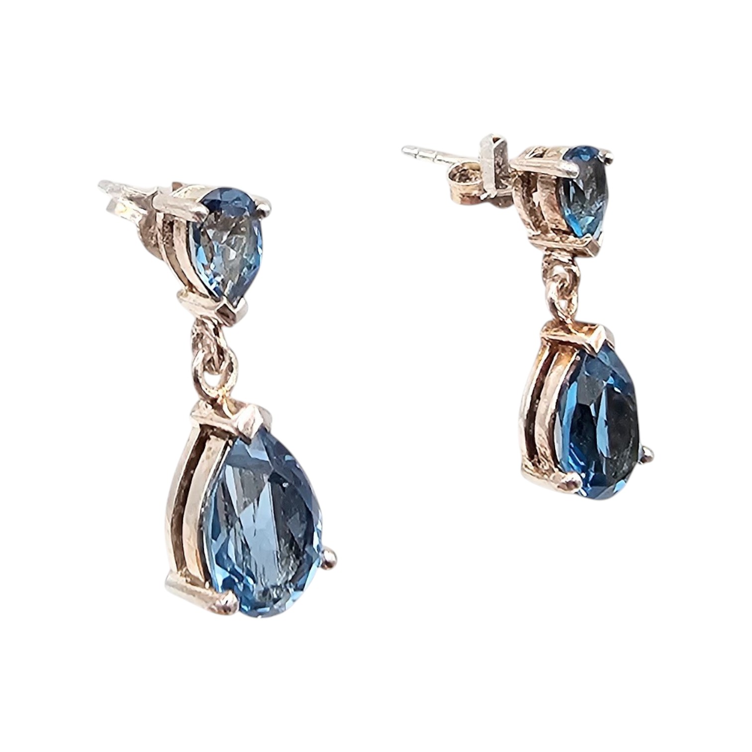 Topaz Sterling Silver Drop Dangle Earrings 3.8 G