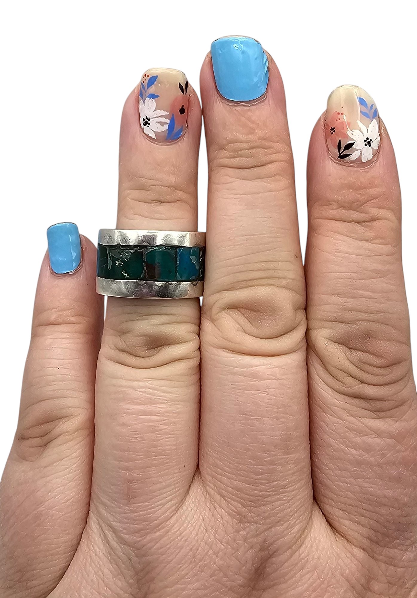 Navajo Turquoise Sterling Silver Ring Size 6.5 8.1 G some chipped stones