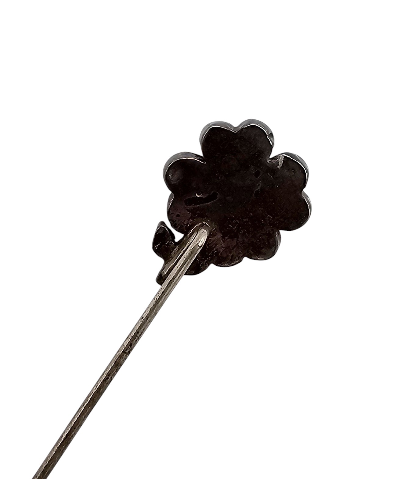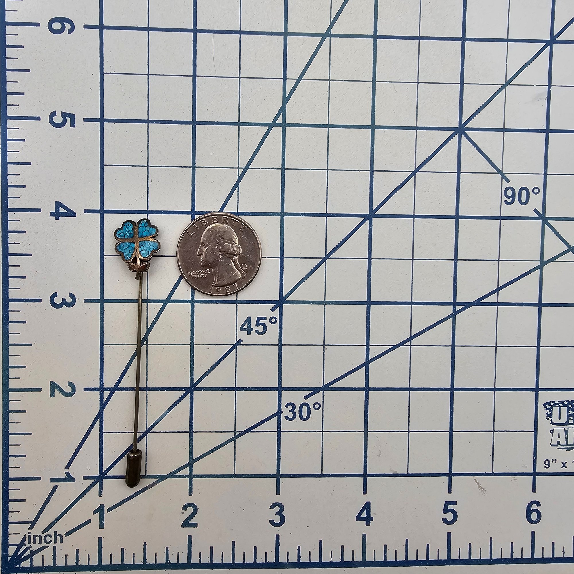 Navajo Crushed Turquoise Sterling Silver Four Leaf Clover Lapel Pin 2.9 G