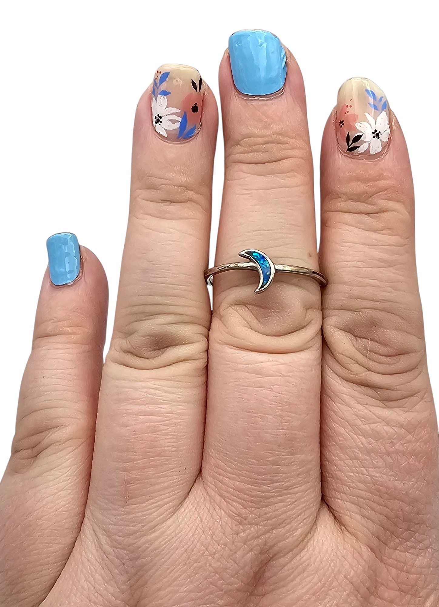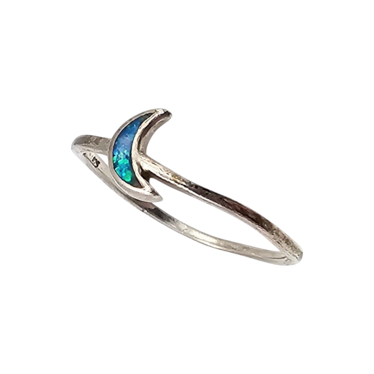 Southwestern Sterling Silver Opal Moon Ring Size 9 1.3 G