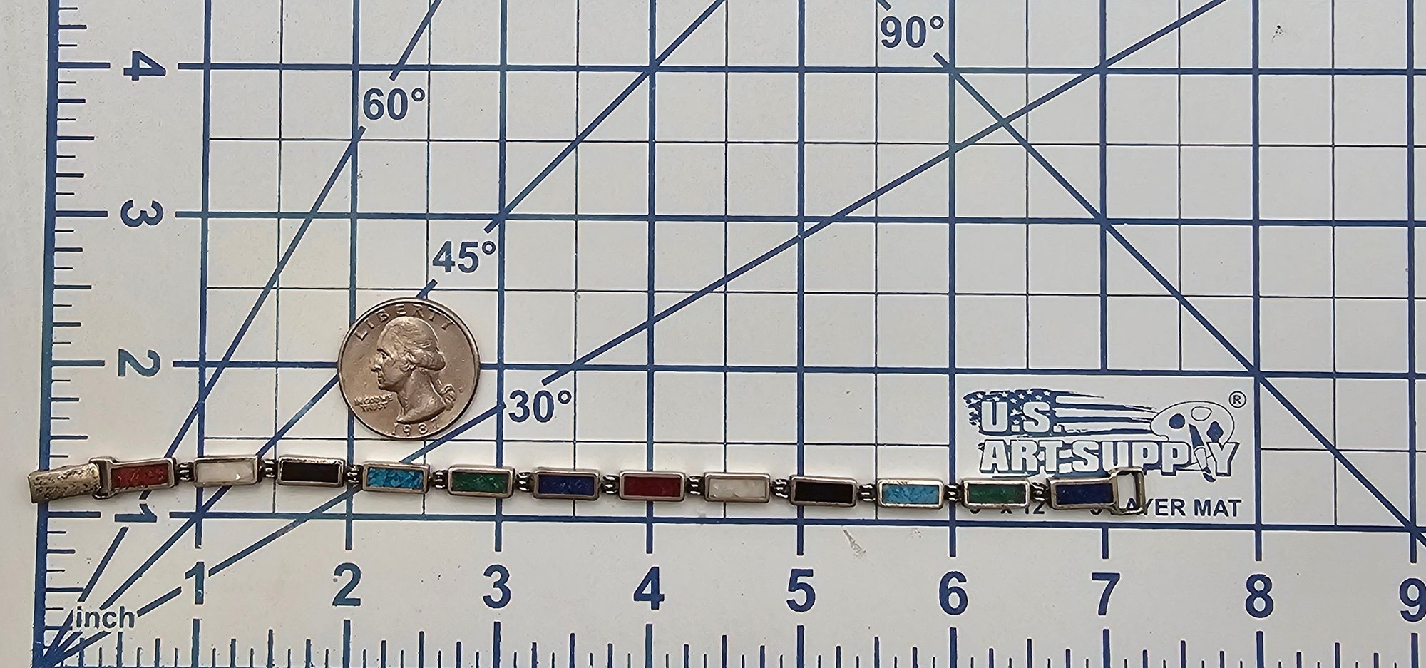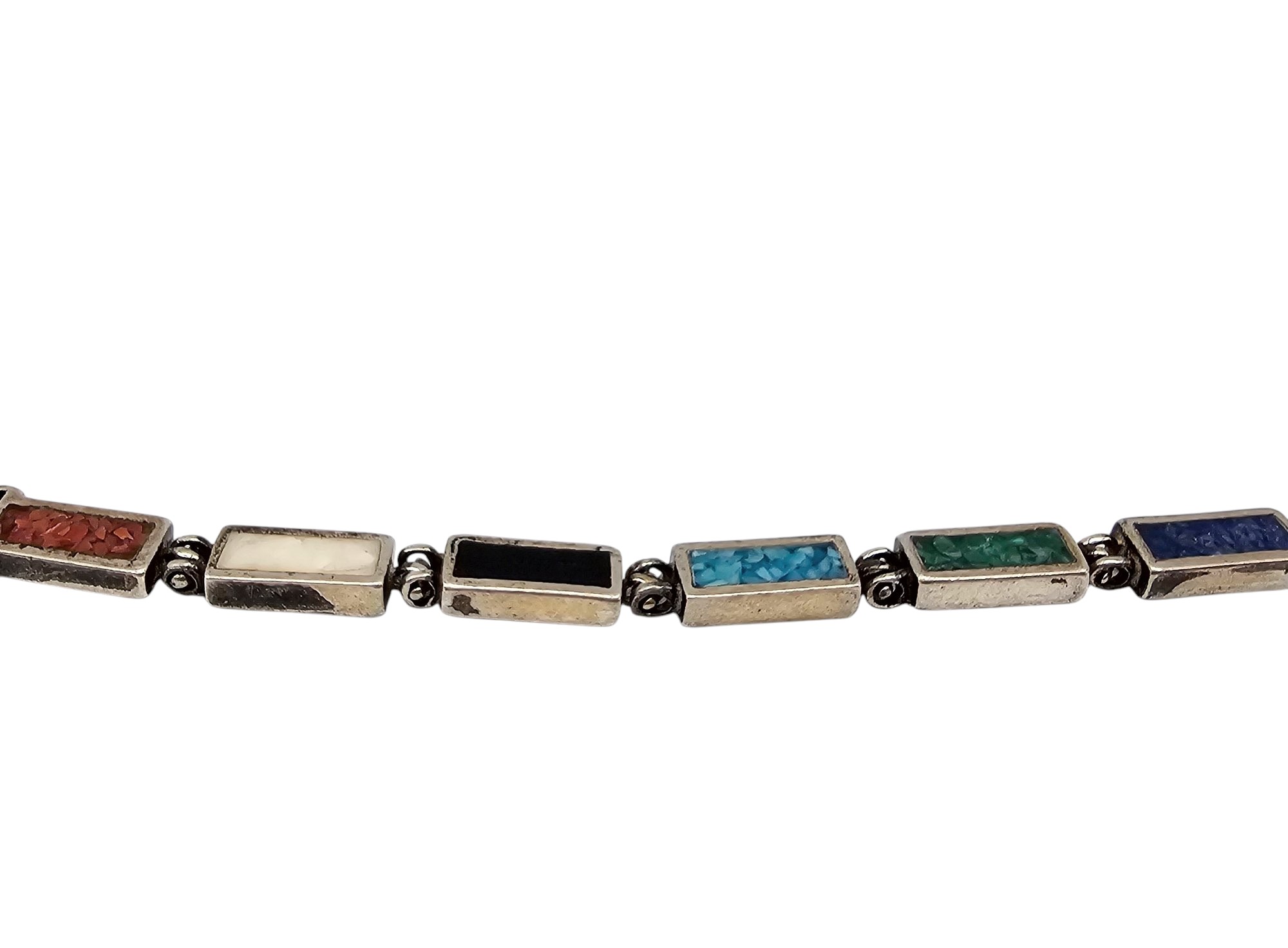 Southwestern Multi Stone Sterling Silver Link Bracelet 13.8 G