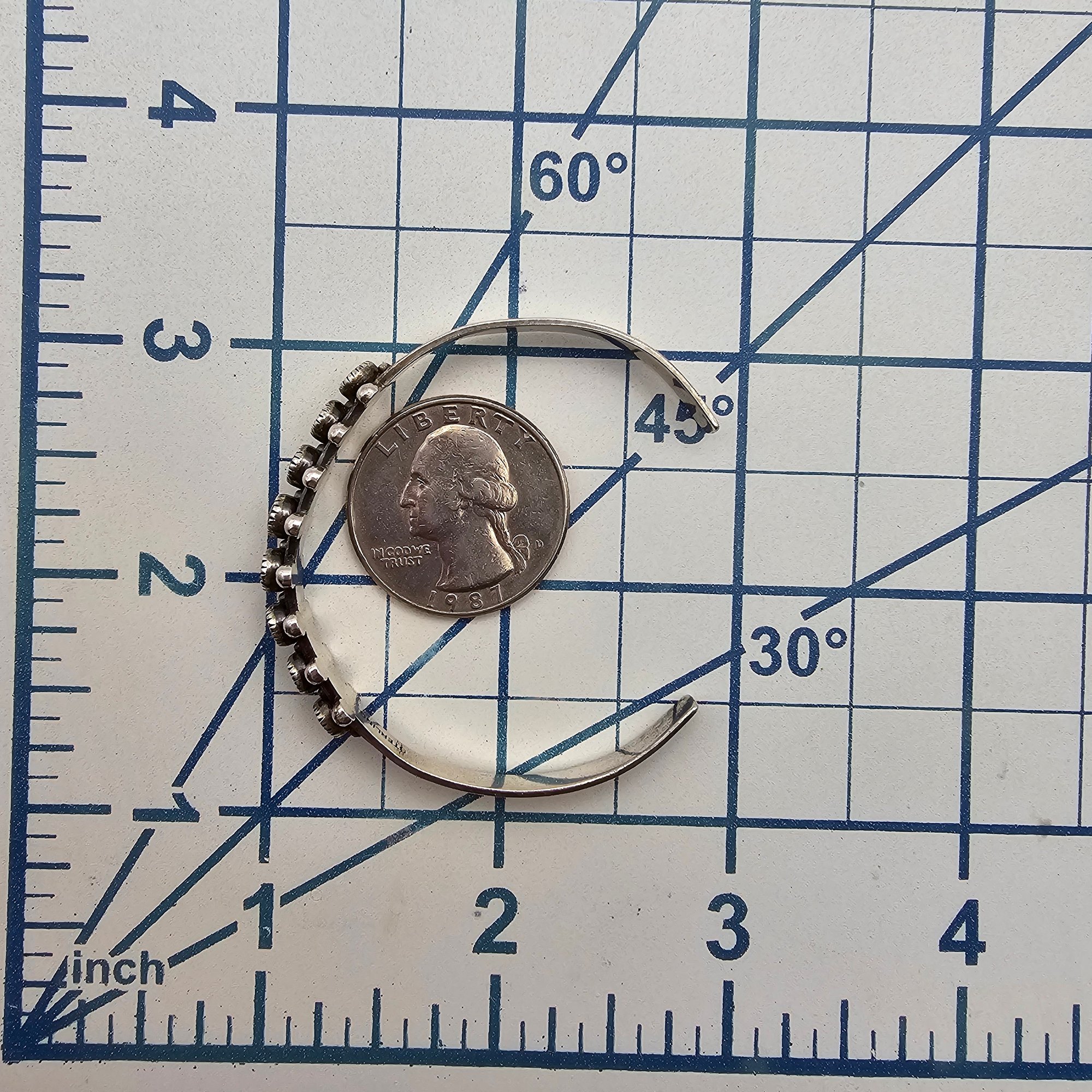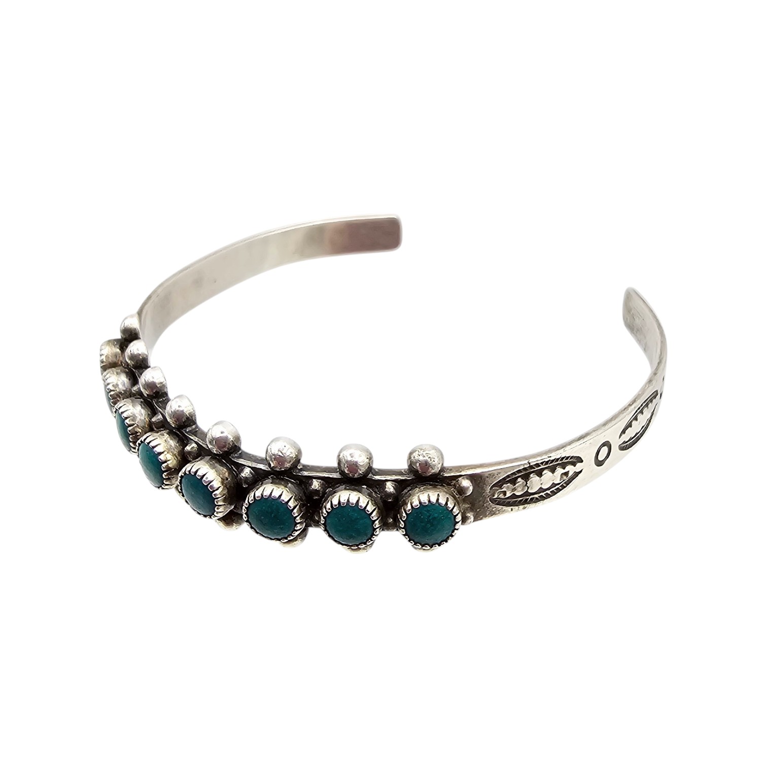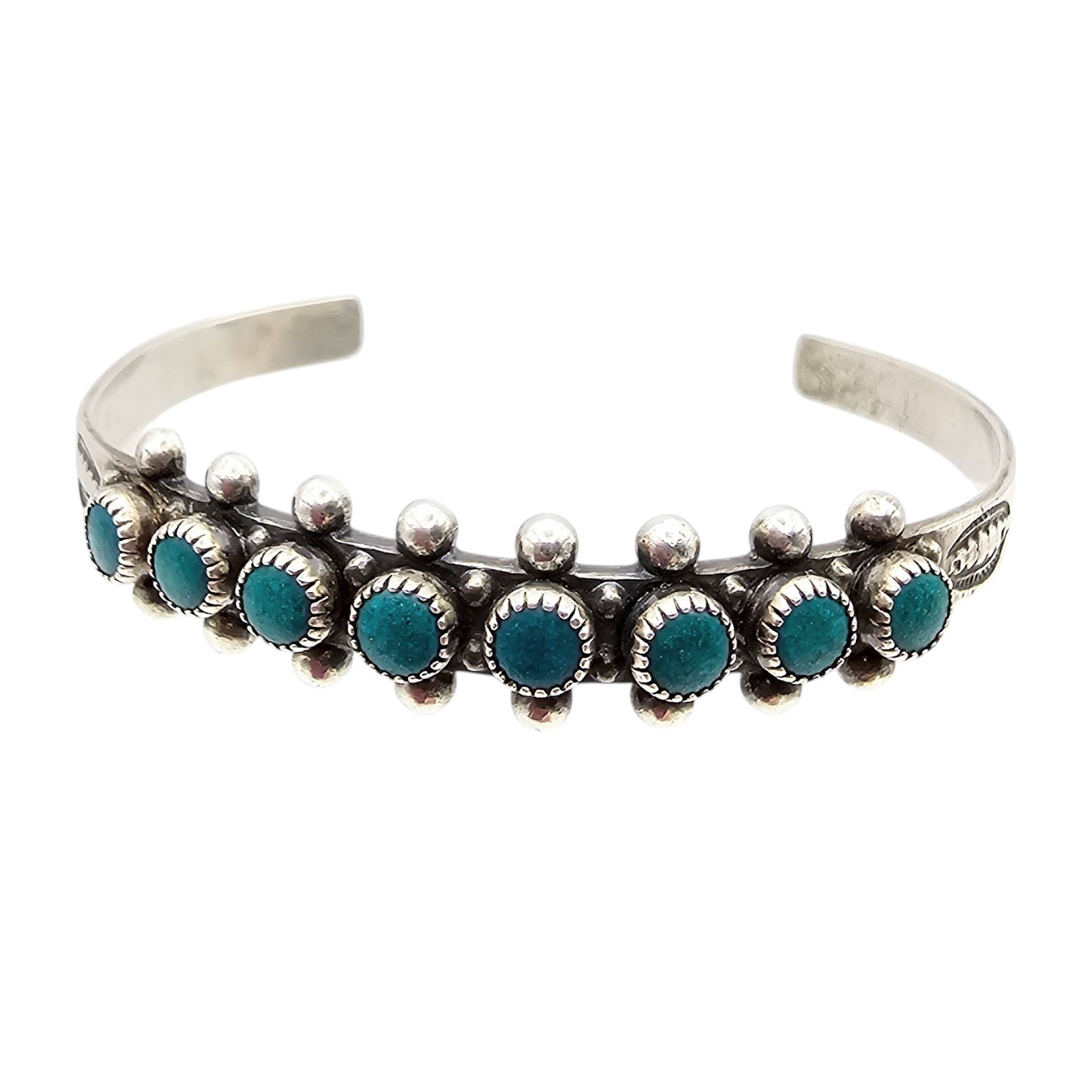 Southwestern Turquoise Row Sterling Silver Cuff Bracelet 8.3 G