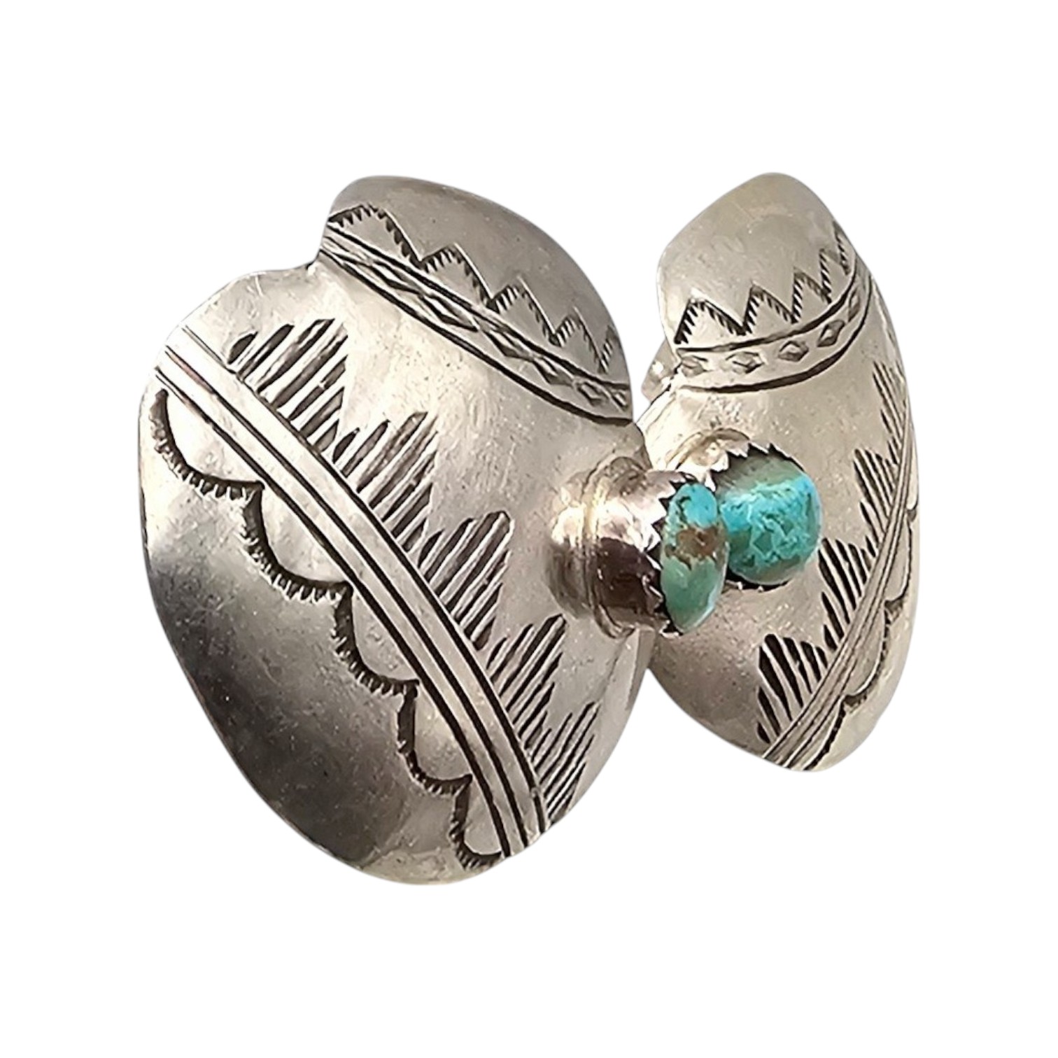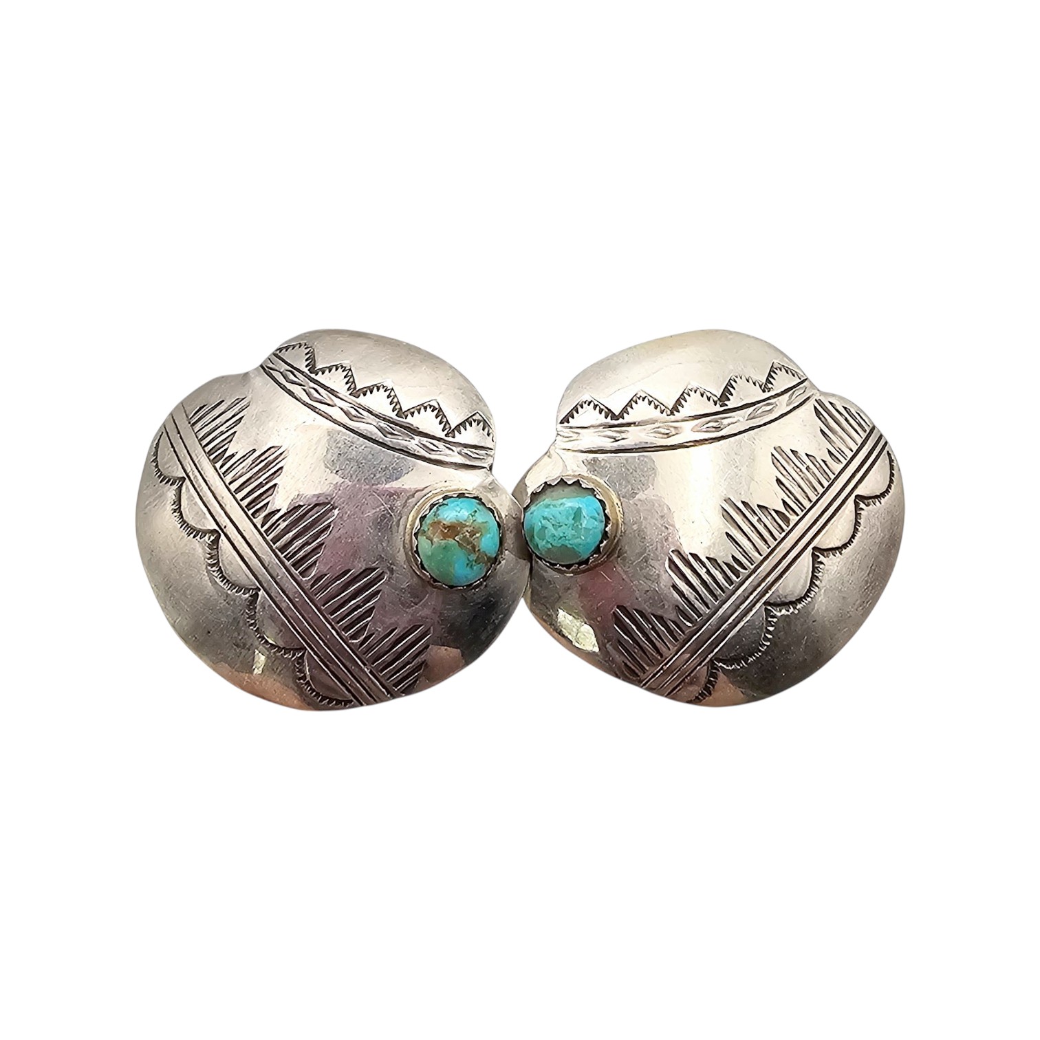 Southwestern Turquoise Sterling Silver Concho Style Earrings 7.5 G