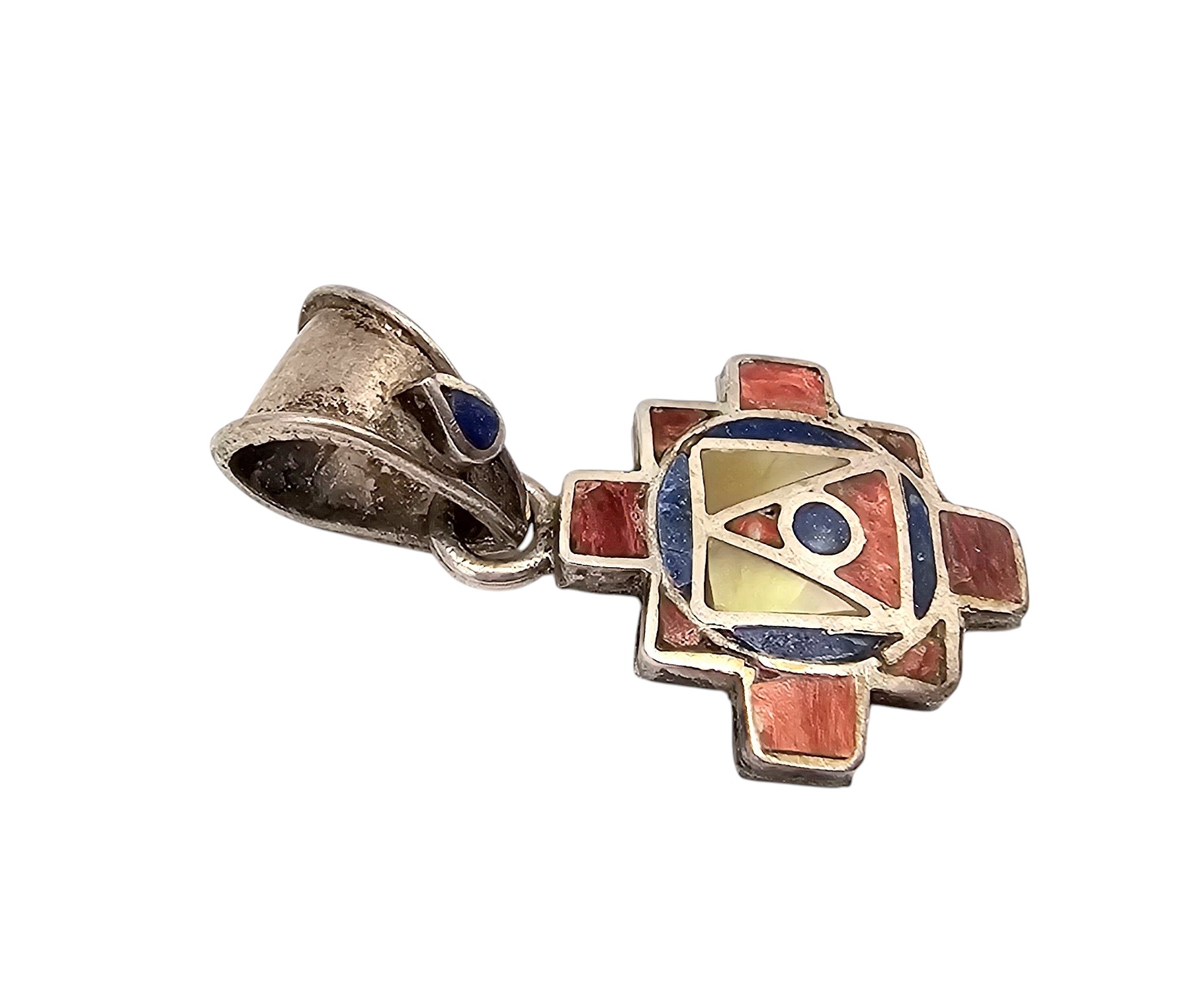 Southwestern Multi Stone Sterling Silver Inlay Pendant 2.4 G