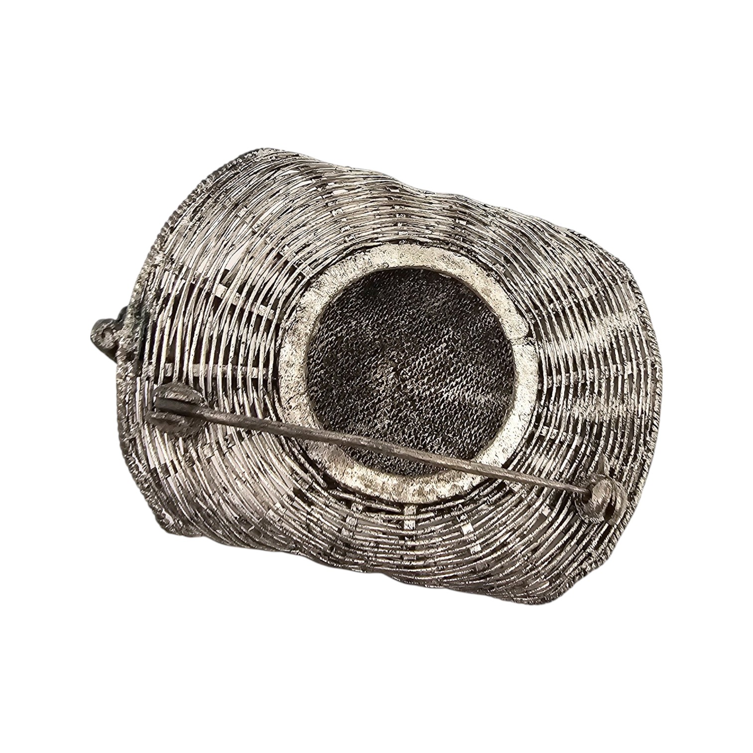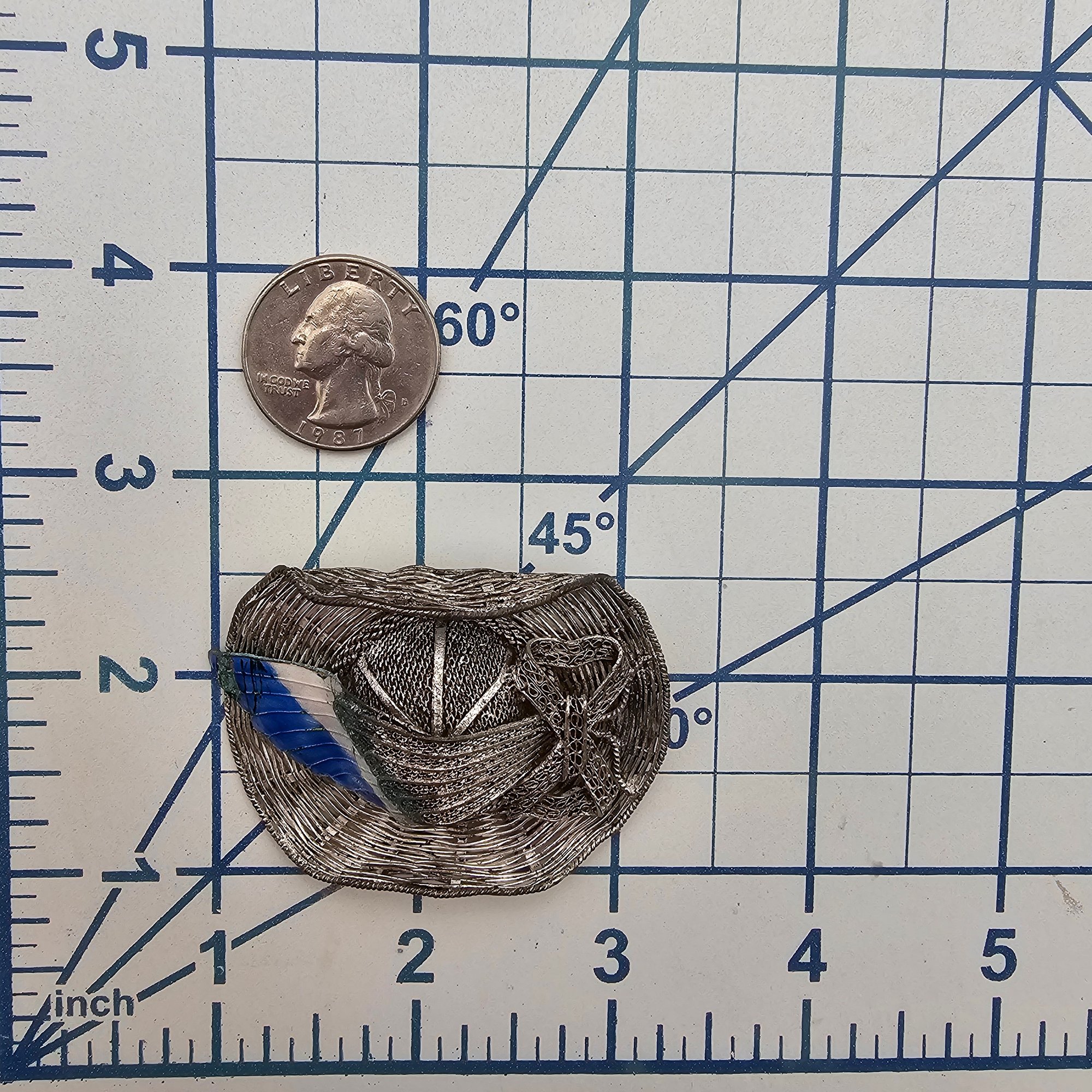 Signed Enamel Sterling Silver Filigree Hat Brooch 17.3 G