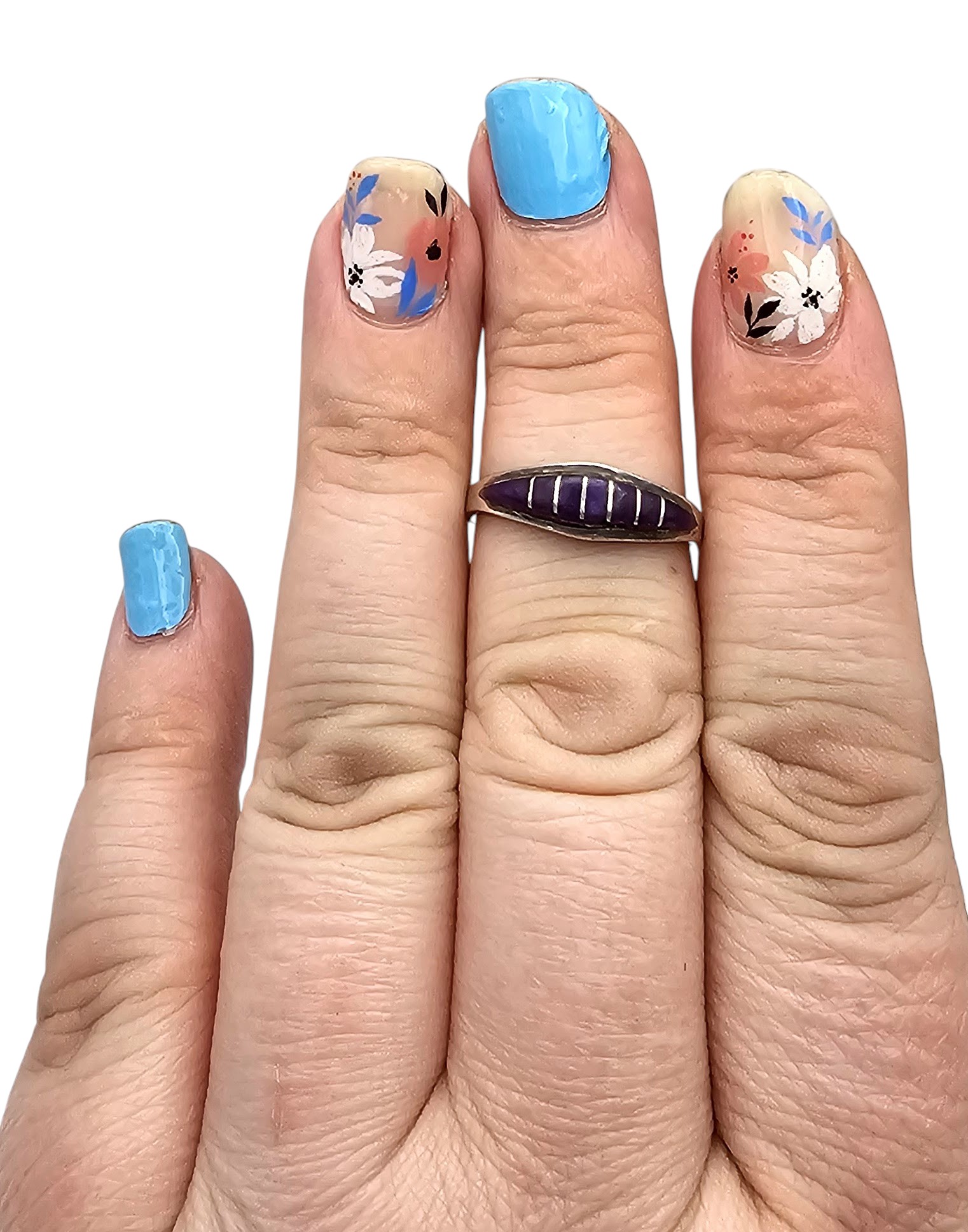 Navajo Charoite Sterling Silver Inlay Ring Size 7 2.5 G