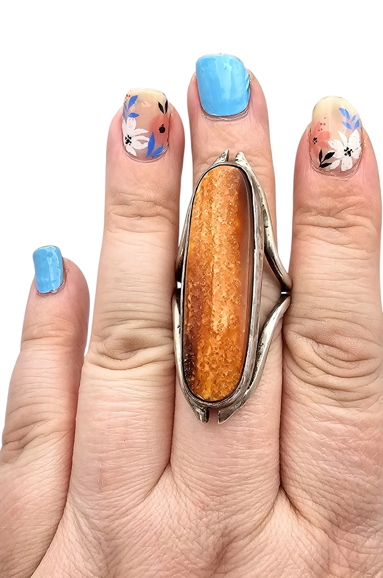 Native Petrified Wood Sterling Silver Ring Size 8.25 18.3 G