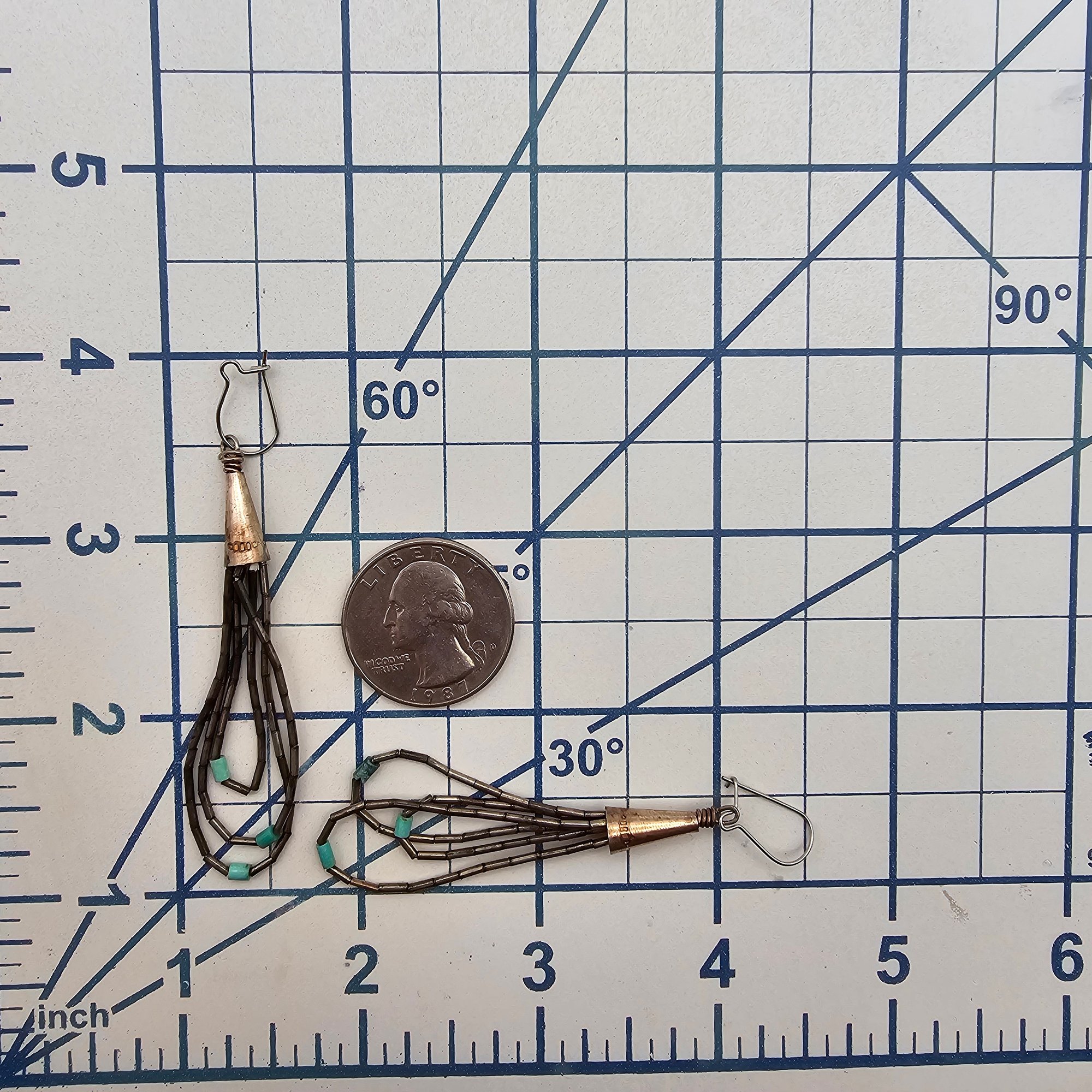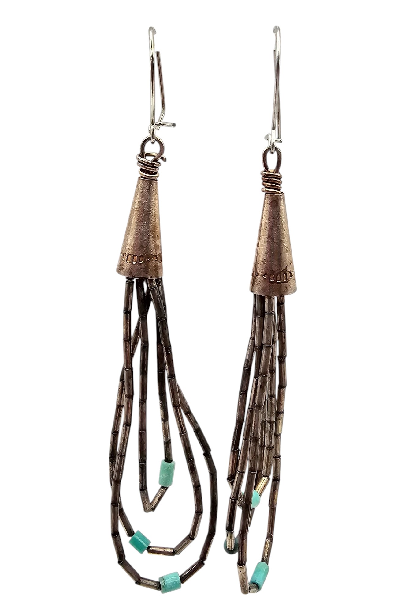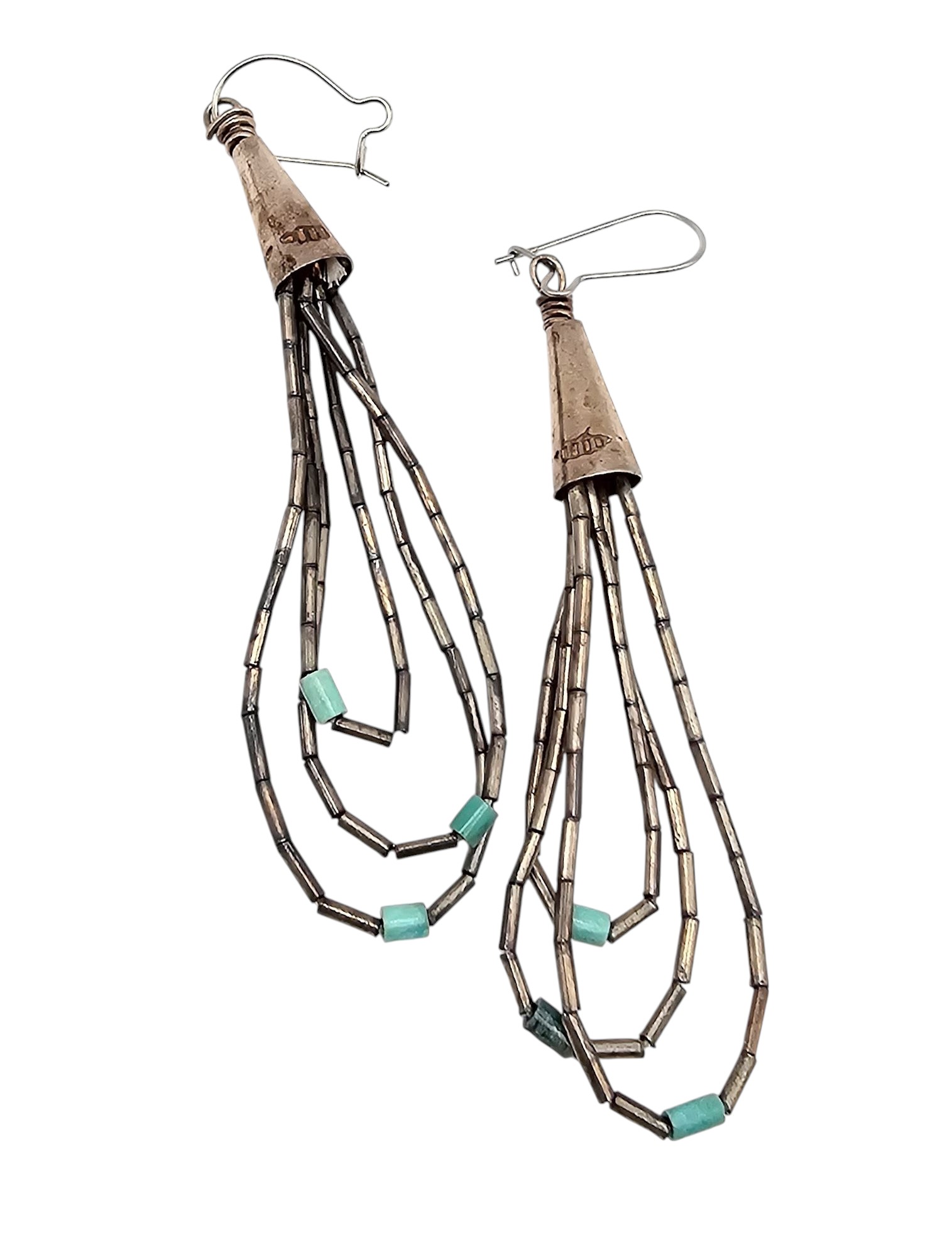 Native Turquoise Sterling Silver Liquid Silver 3 Strand Drop Dangle Earrings 4.9 G