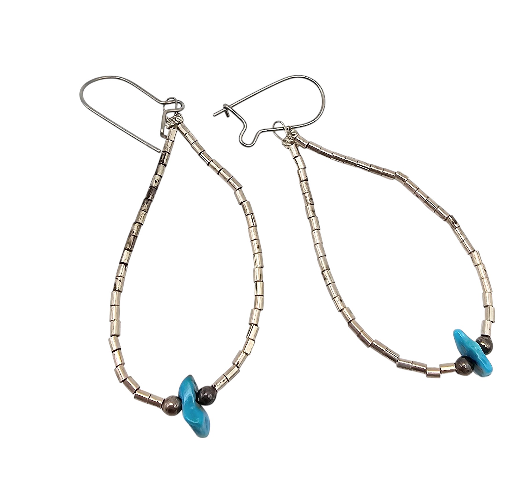 Navajo Turquoise Sterling Silver Liquid Silver Drop Dangle Earrings 1.6 G