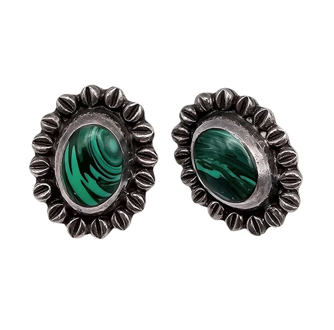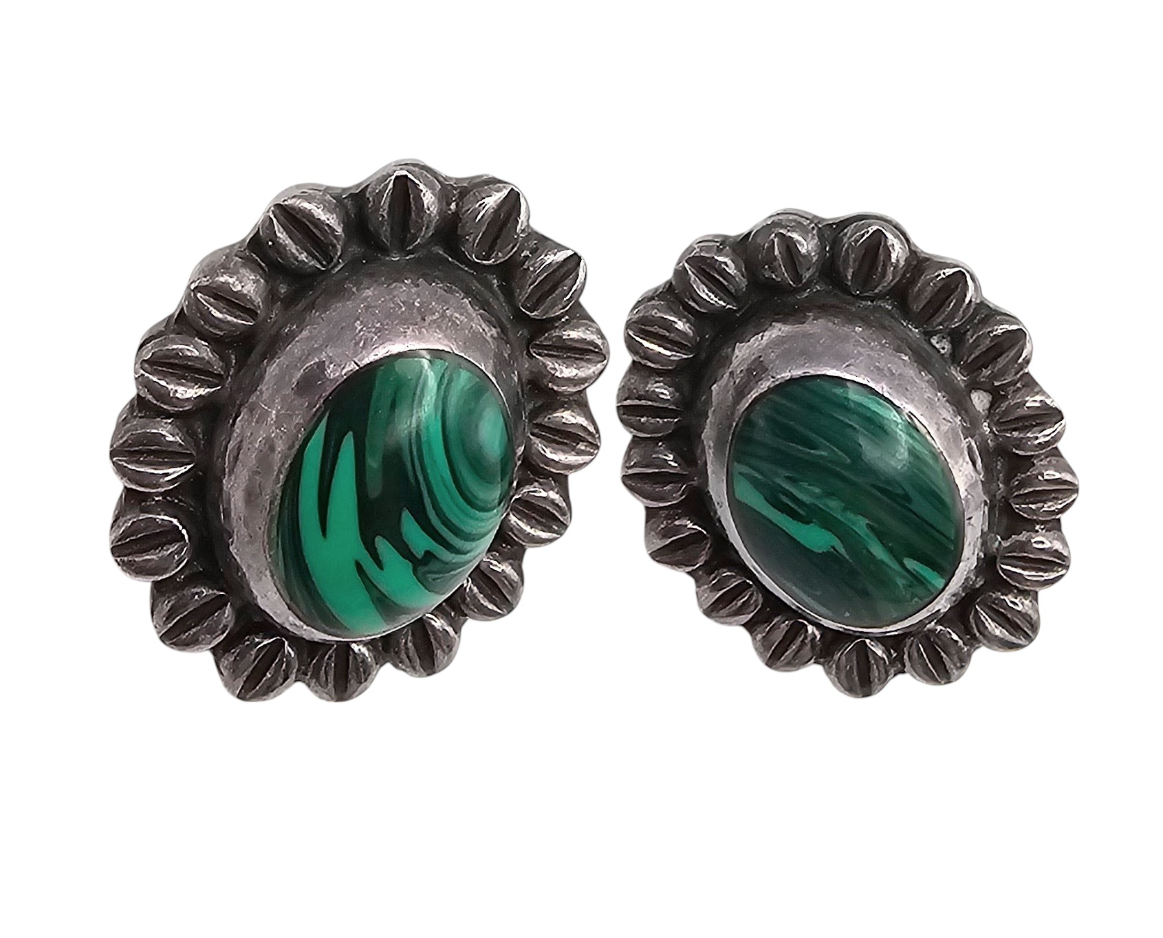 Mexico Malachite Sterling Silver Earrings 12.8 G