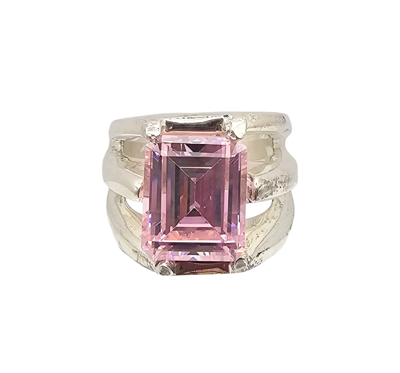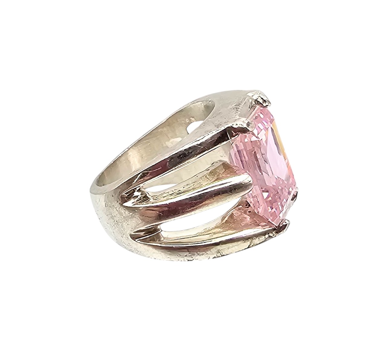 Mexico Rhinestone Sterling Silver Cocktail Ring Size 6 15.7 G