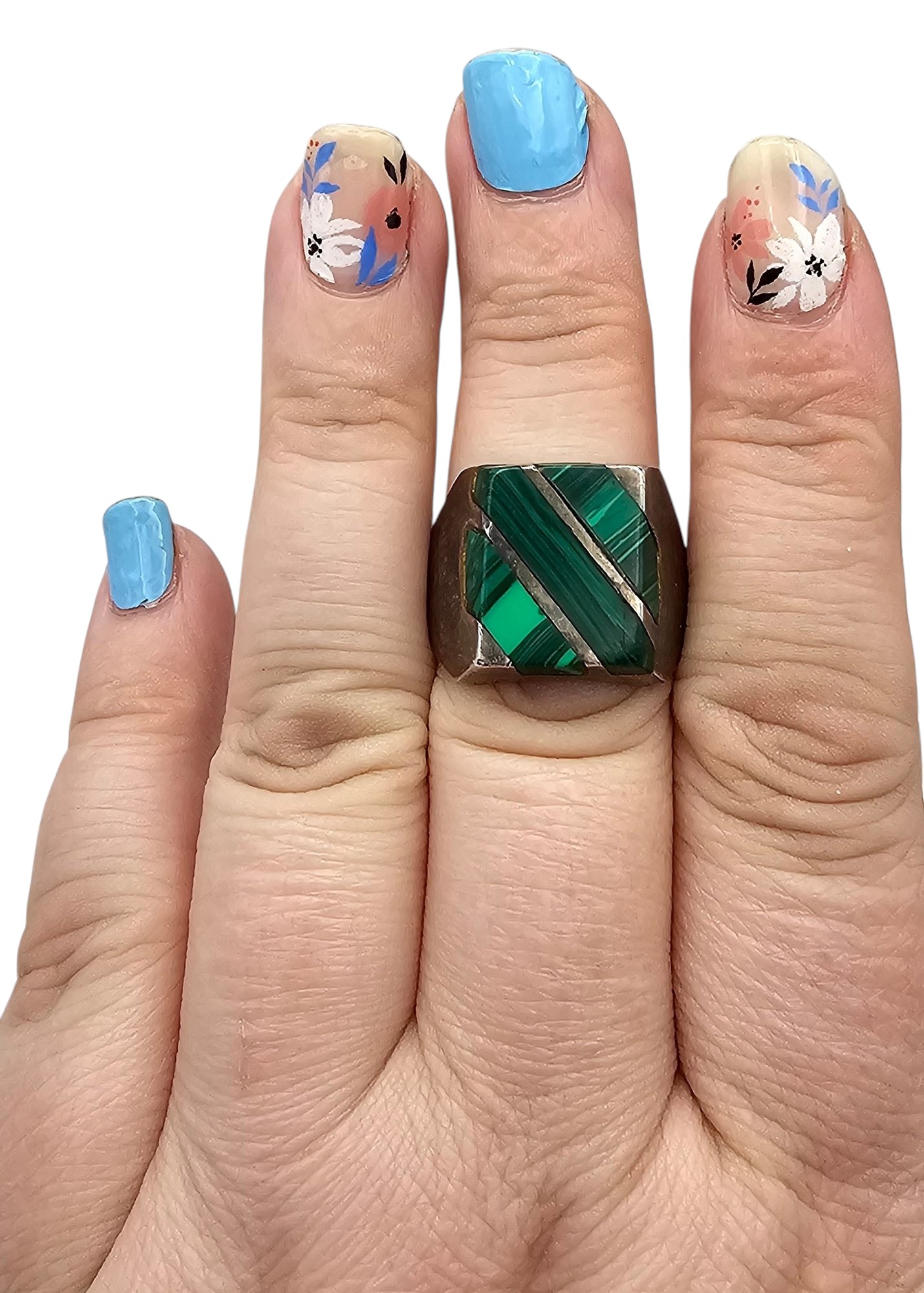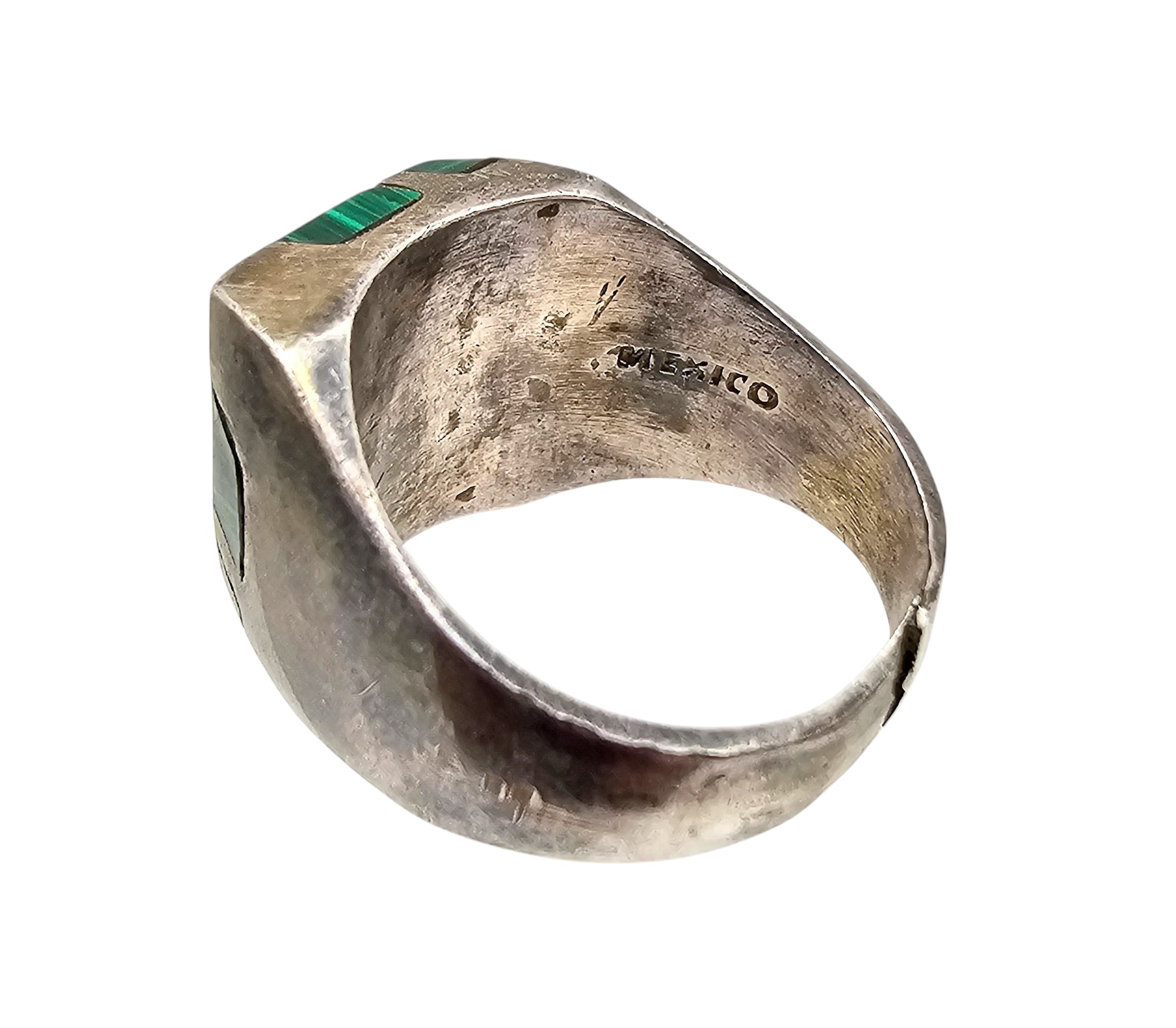 Mexico Malachite Sterling Silver Inlay Ring Size 8.5 15.2 G as is repaired band