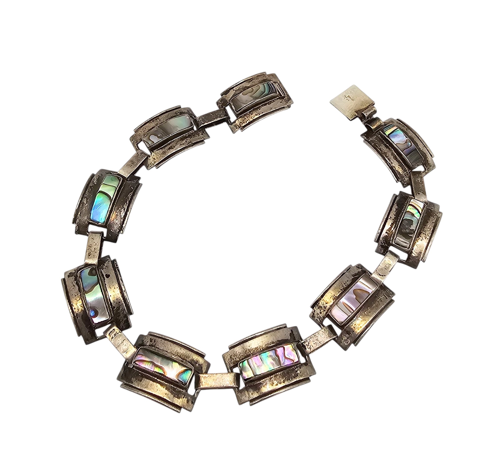 Mexico Taxco Abalone Sterling Silver Bracelet 9.8 G