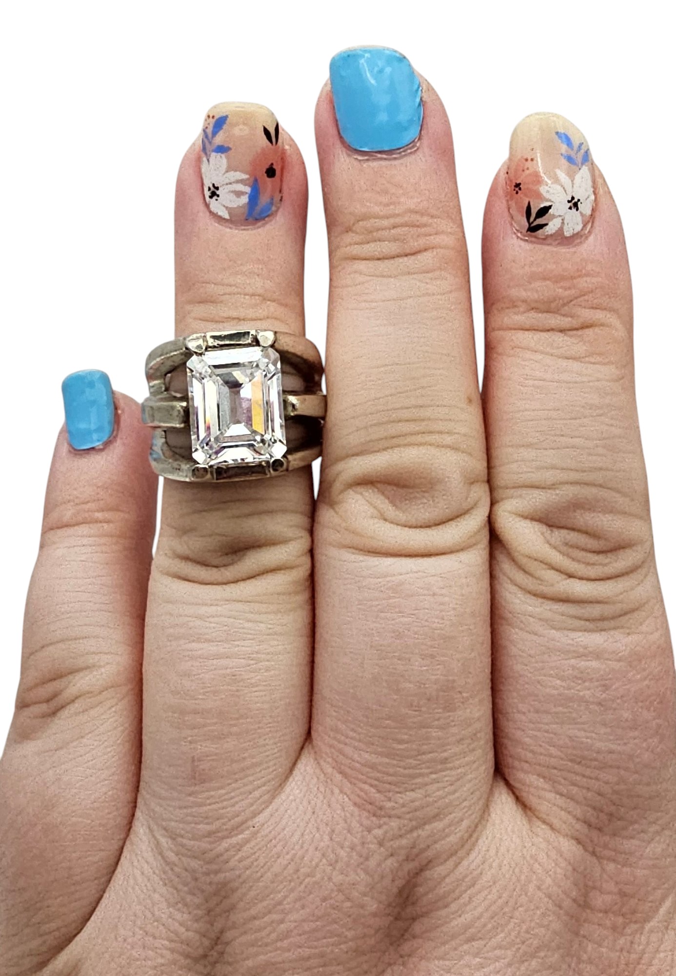 Mexico Rhinestone Sterling Silver Cocktail Ring Size 5.5 15.7 G