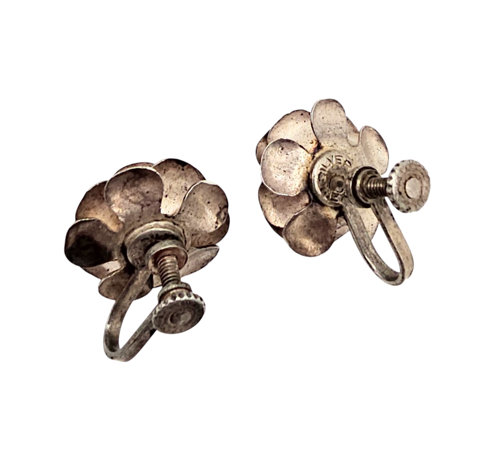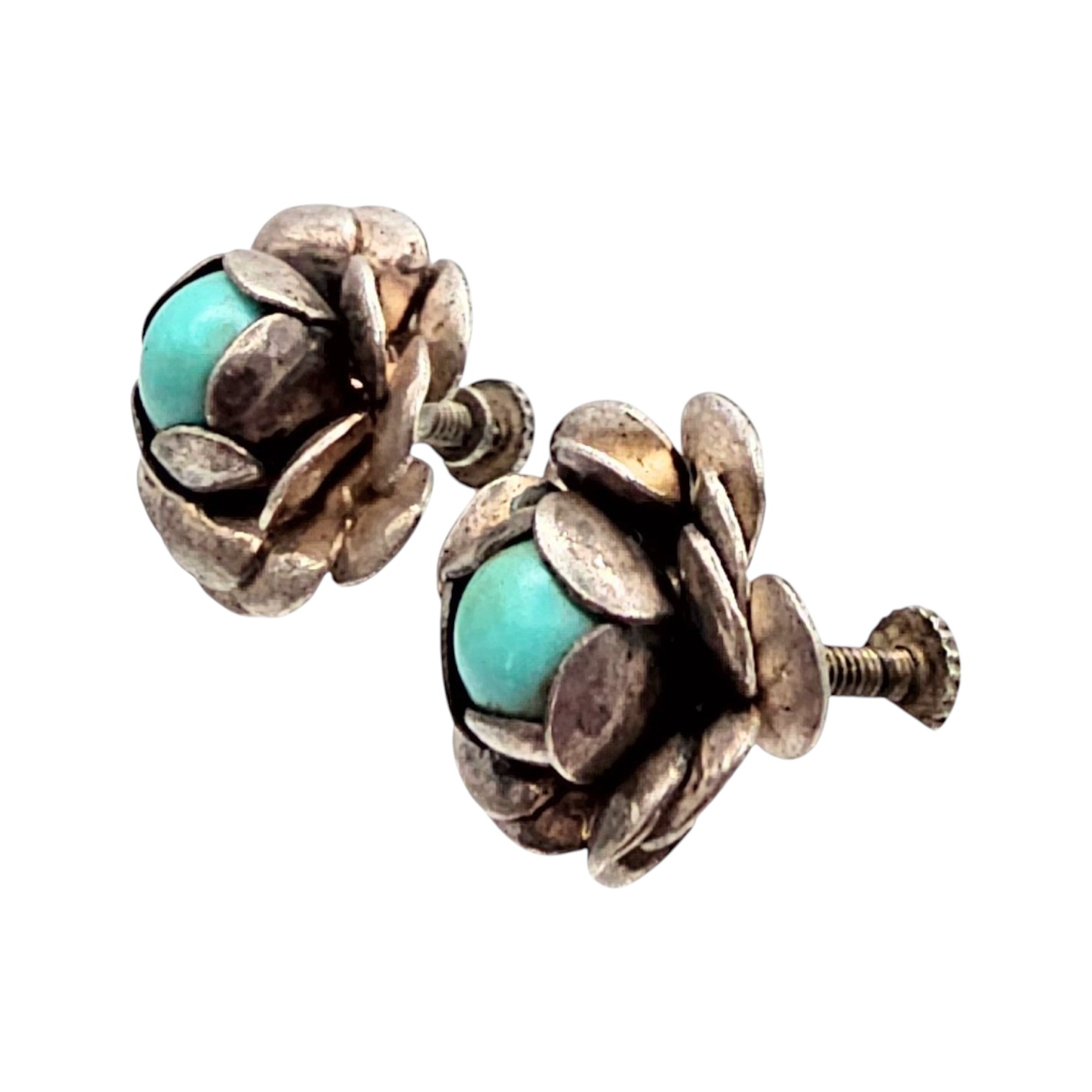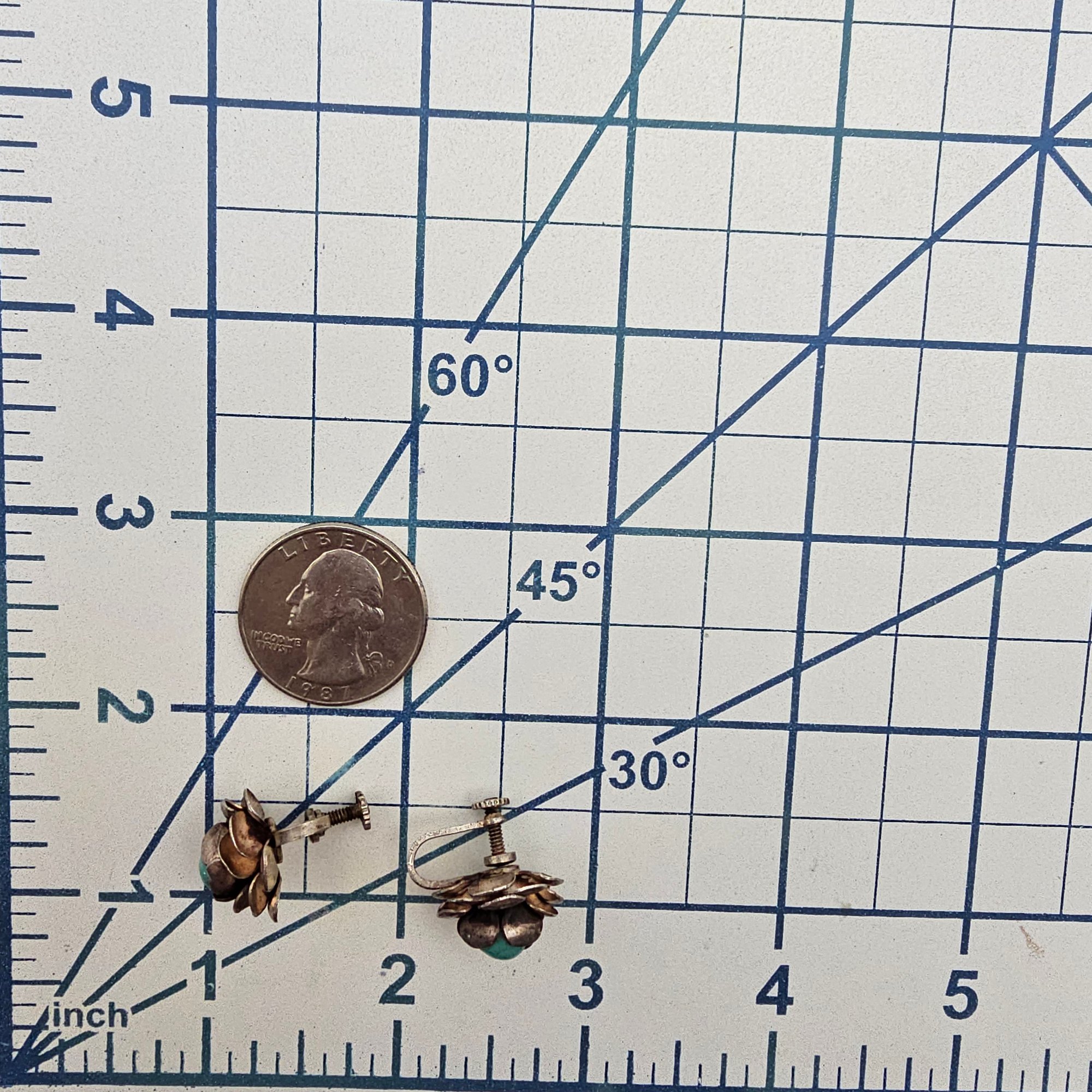 Mexico Turquoise Sterling Silver Flower Earrings 6.9 G