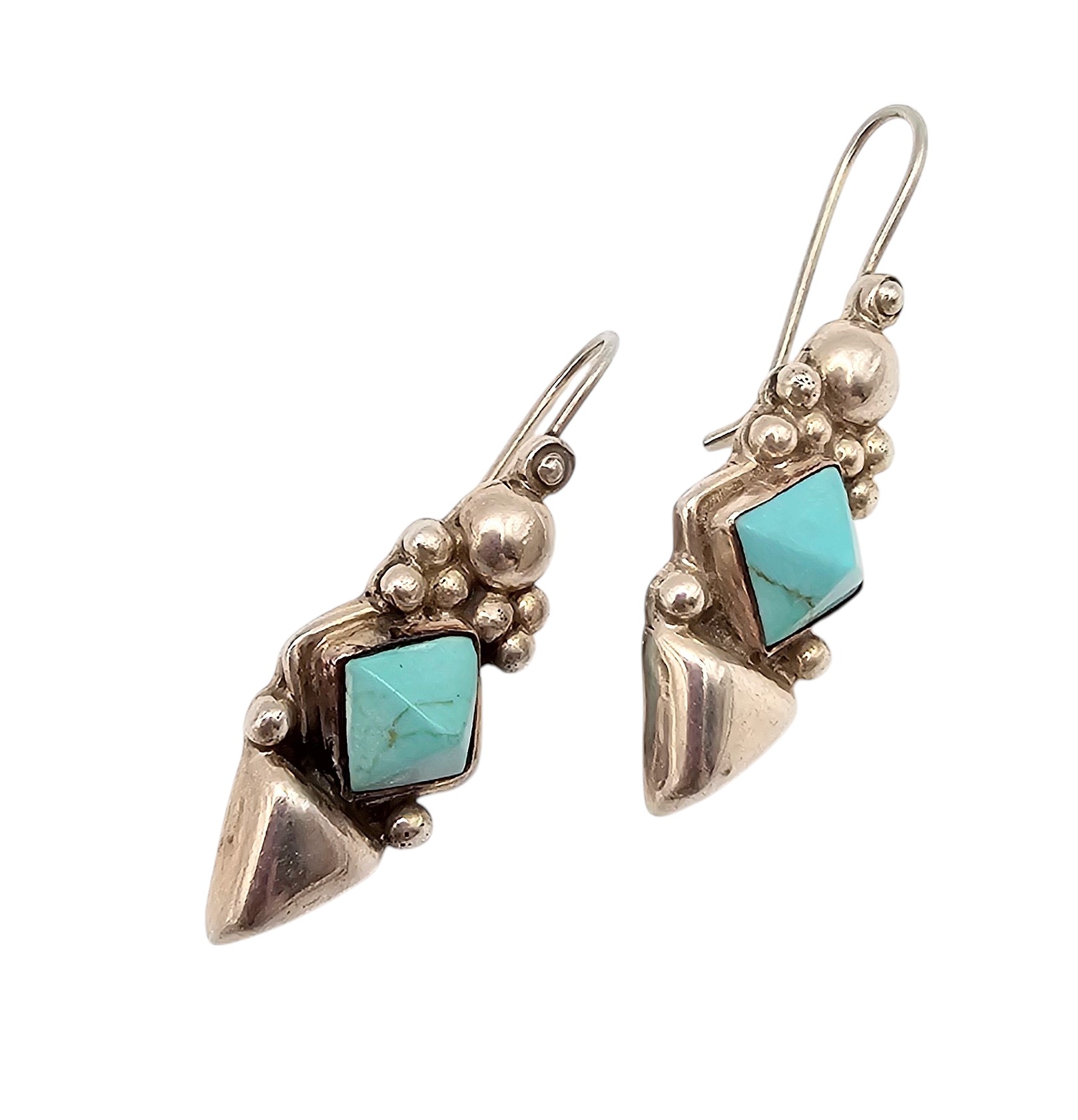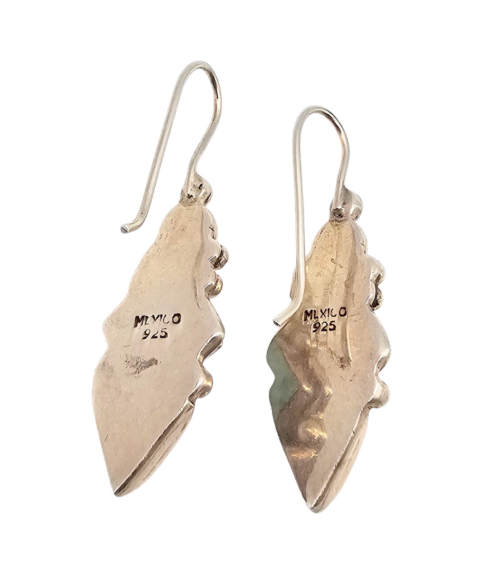 Mexico Turquoise Sterling Silver Drop Dangle Earrings 11.2 G
