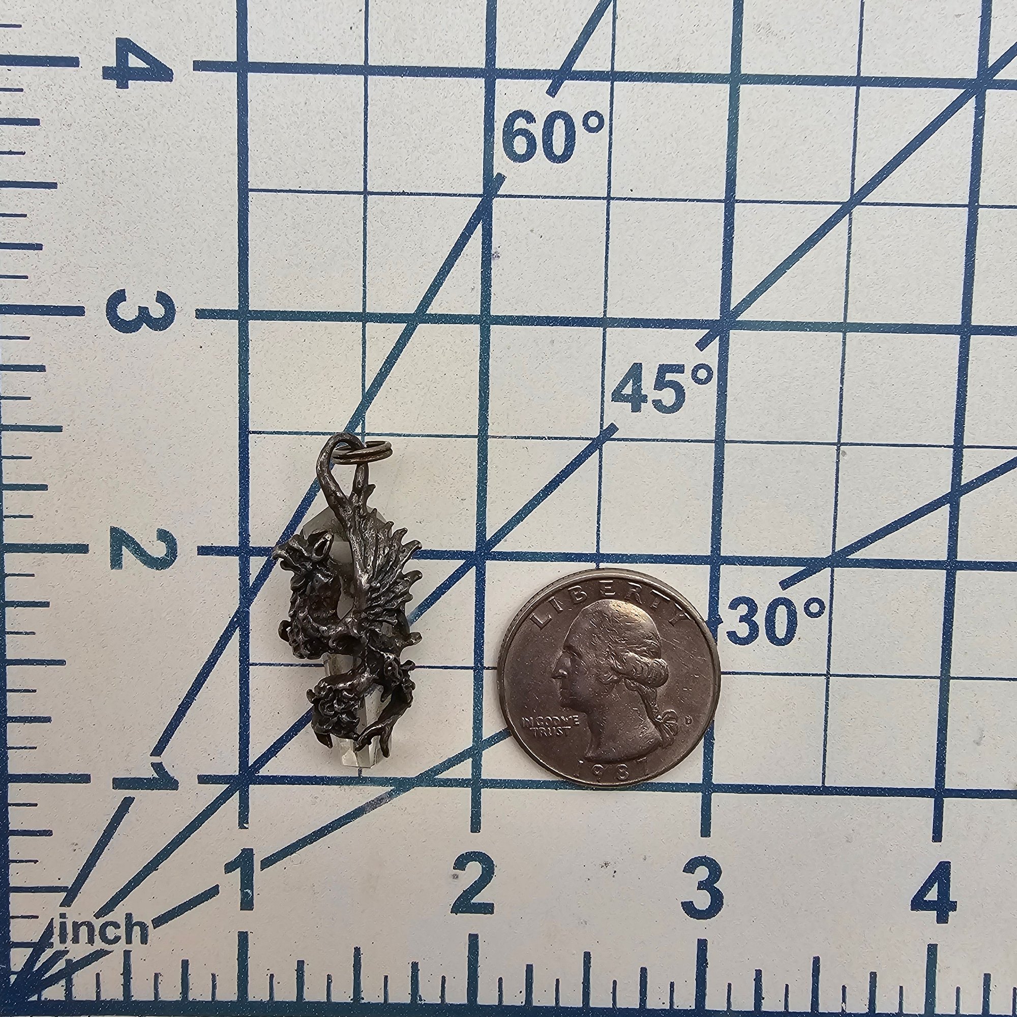 Clear Quartz Sterling Silver Griffin Pendant 7.6 G