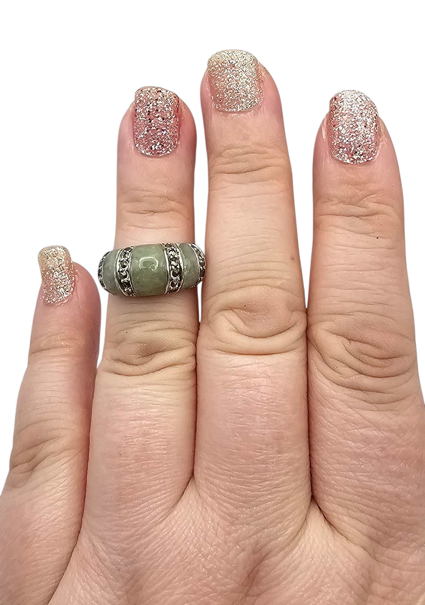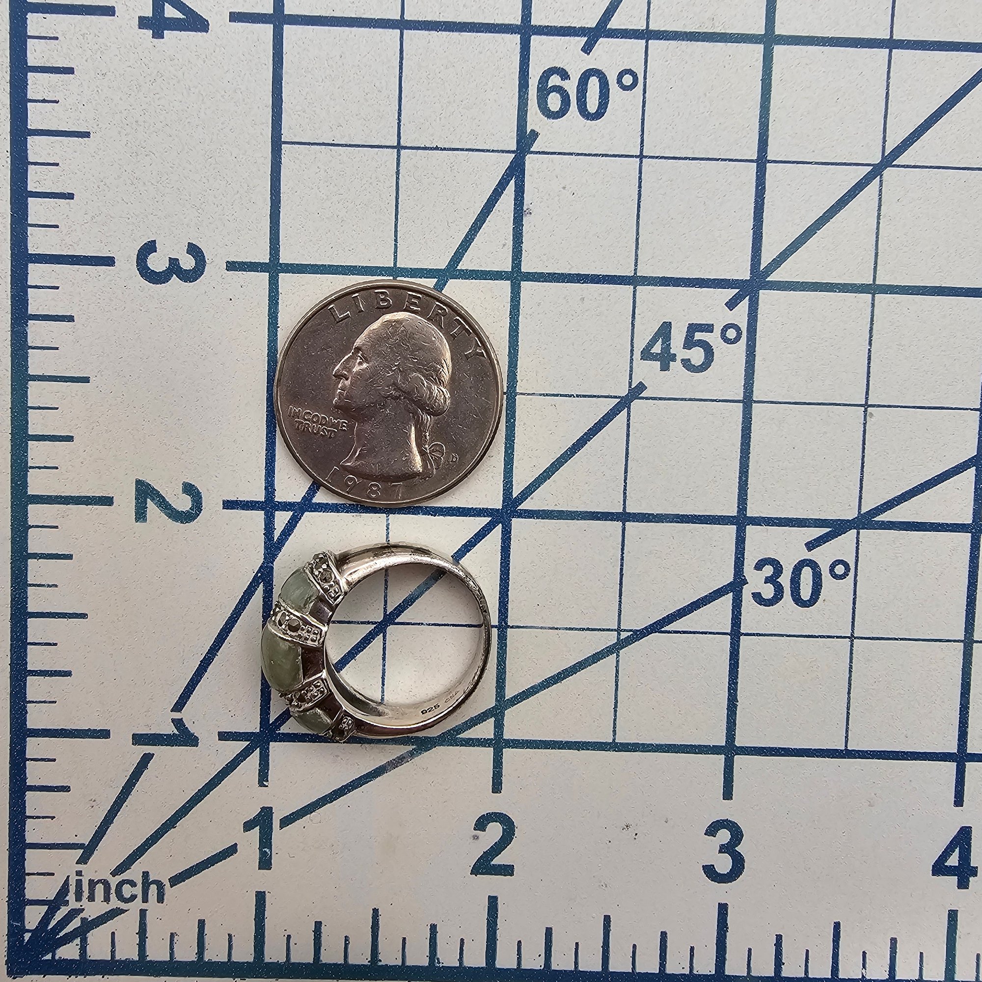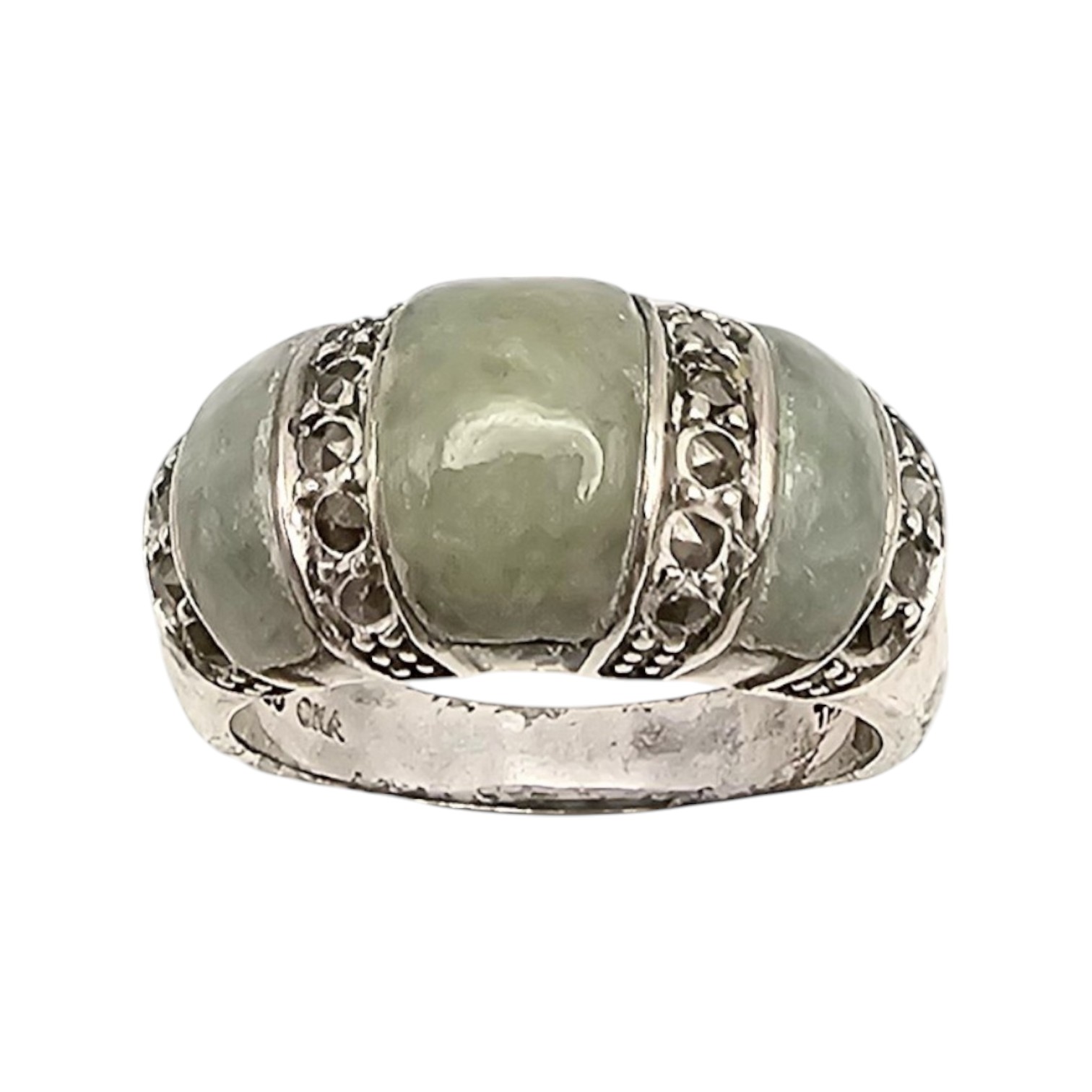 Jade Marcasite Sterling Silver Ring Size 5.5 8.3 G