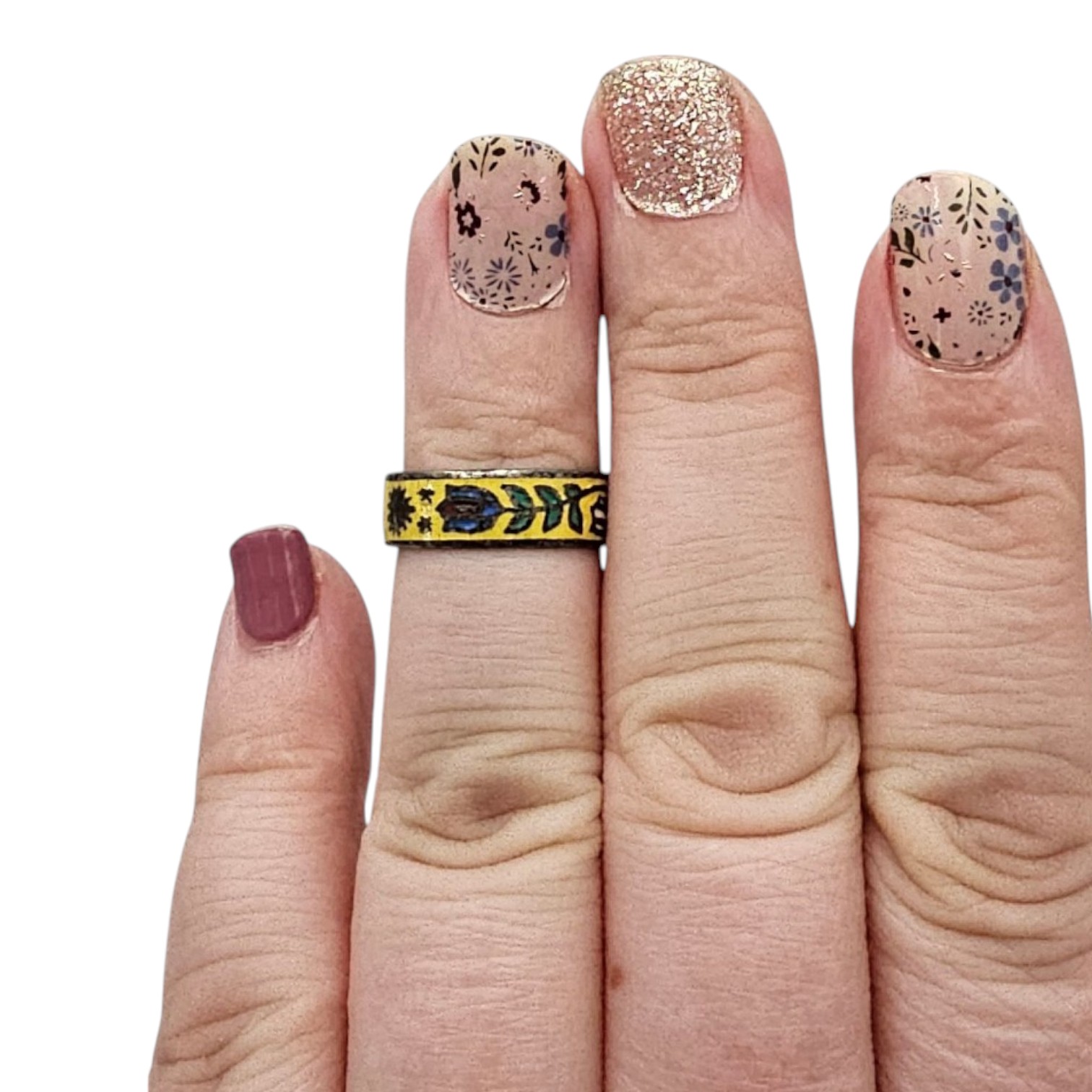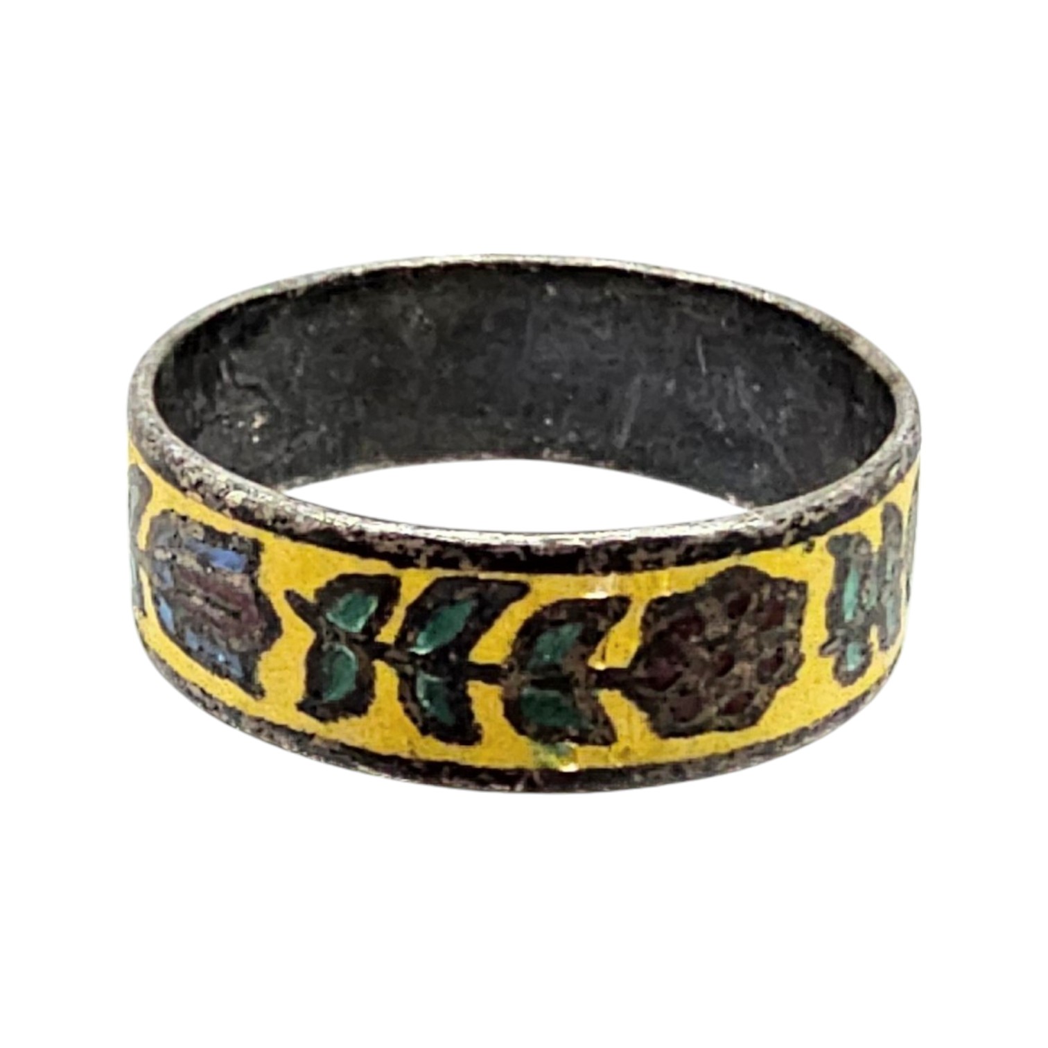 Enamel Sterling Silver Floral Ring Size 5 2.1 G