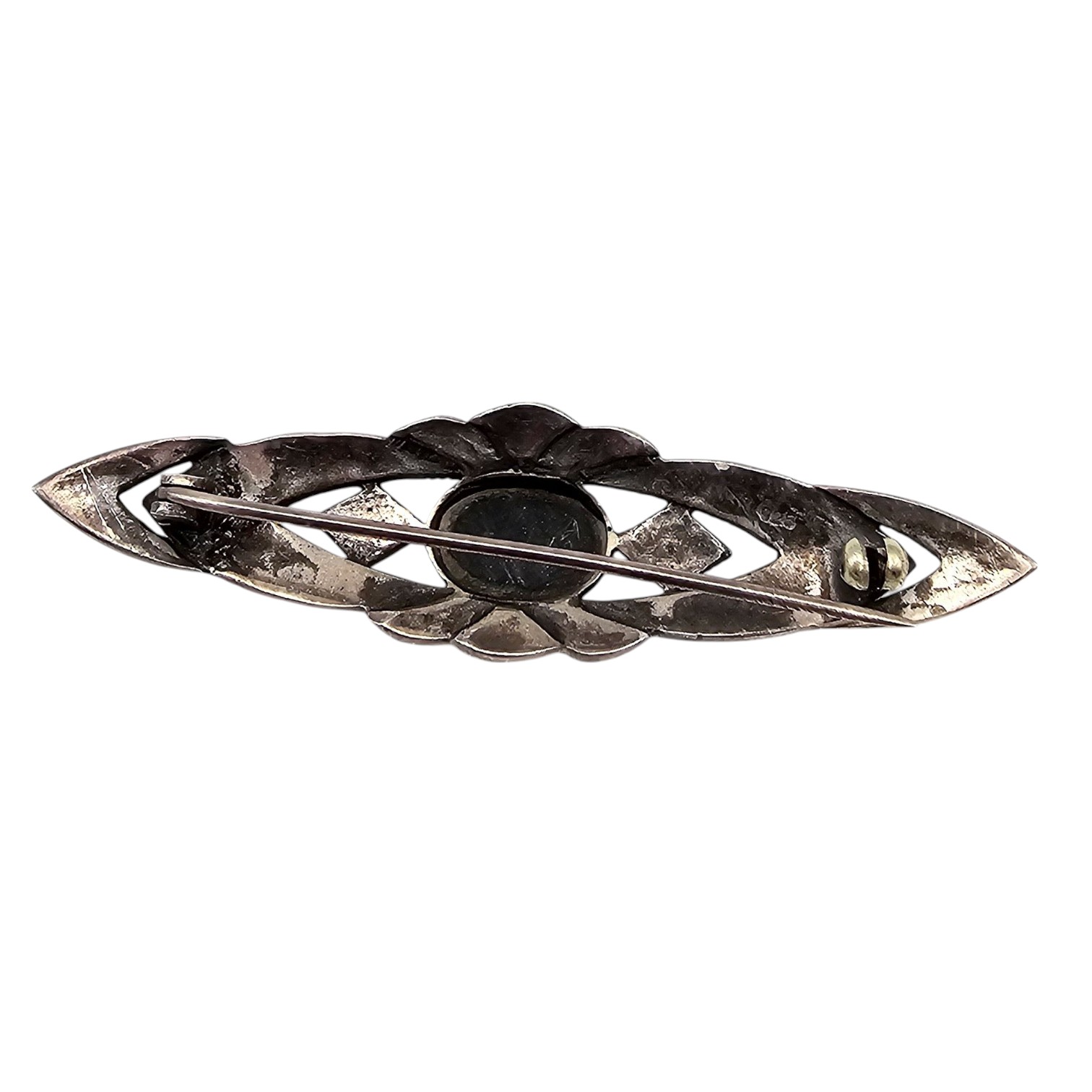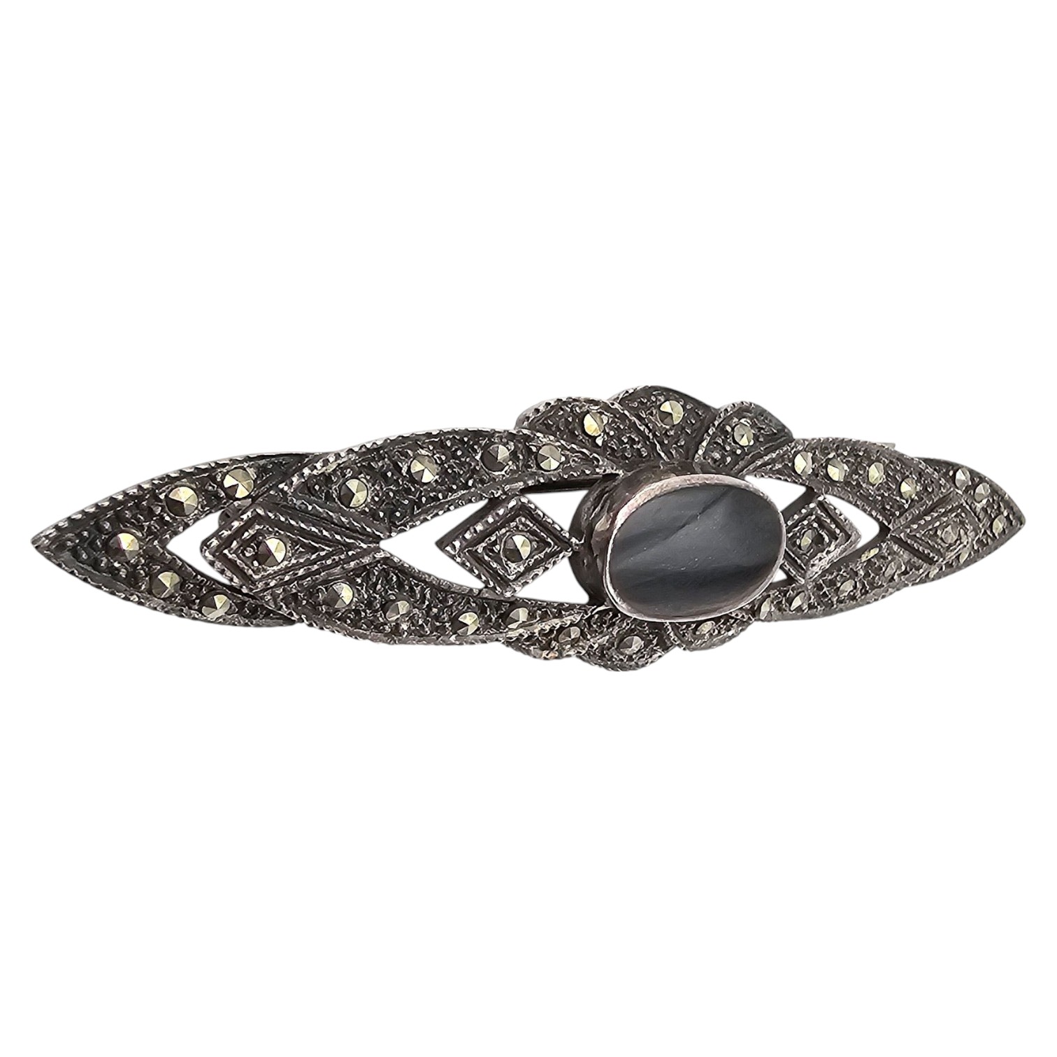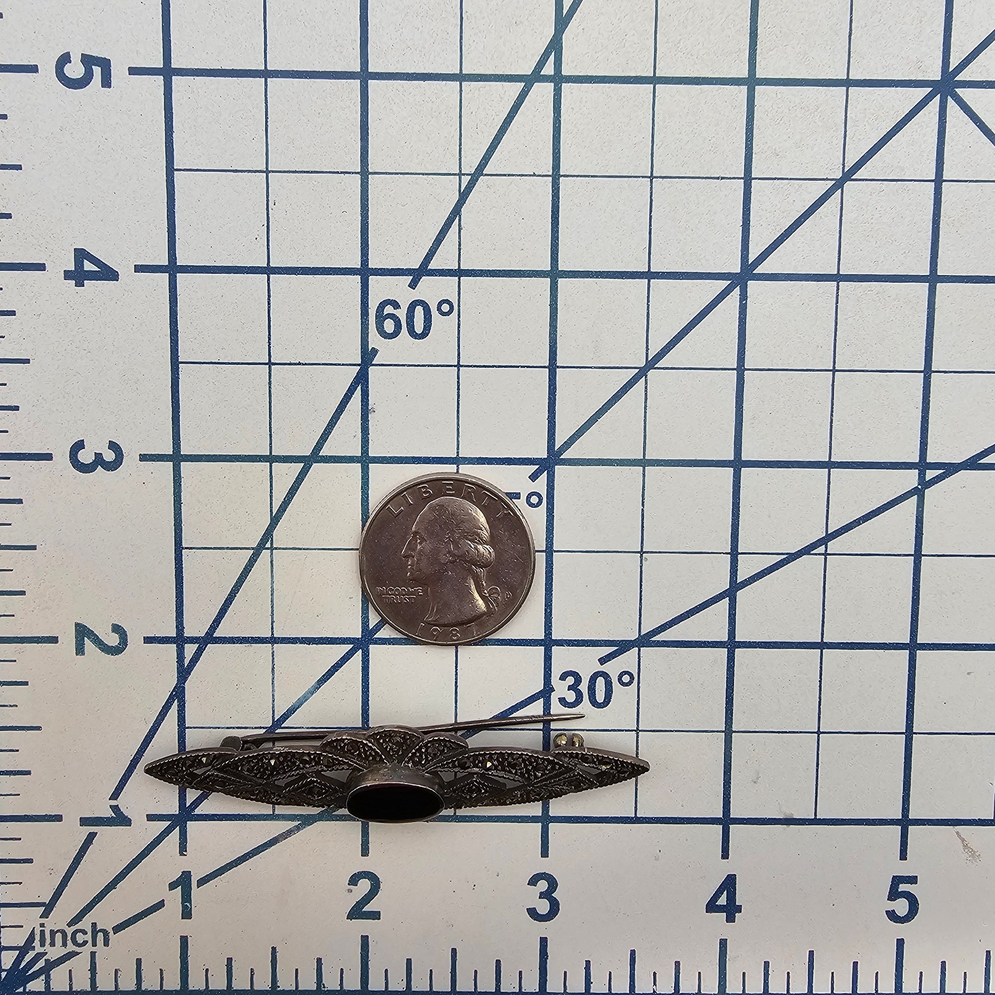 Onyx Sterling Silver Marcasite Brooch 7.7 G