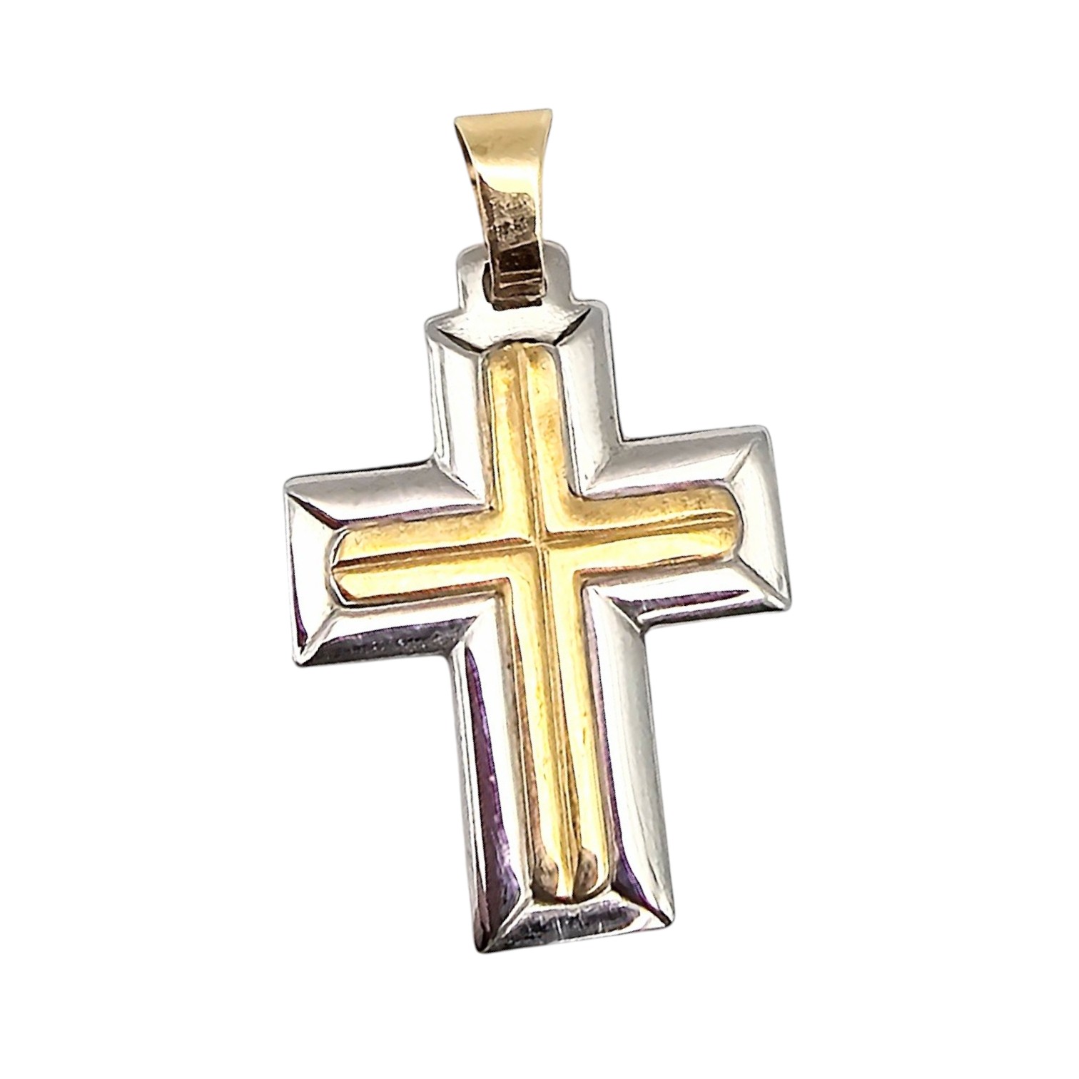 Italy Milor Stainless Steel Two-Tone Cross Pendant 2.2 G