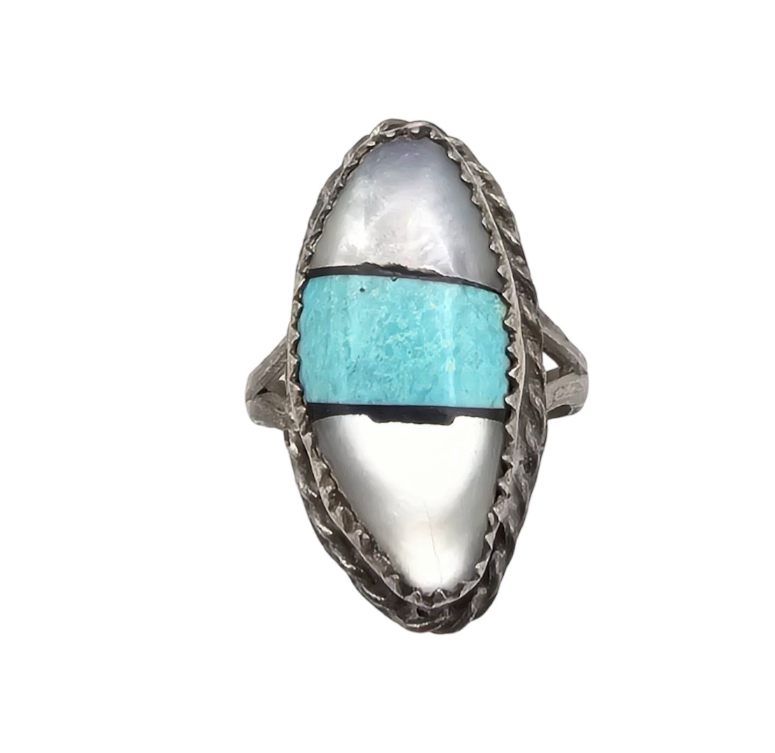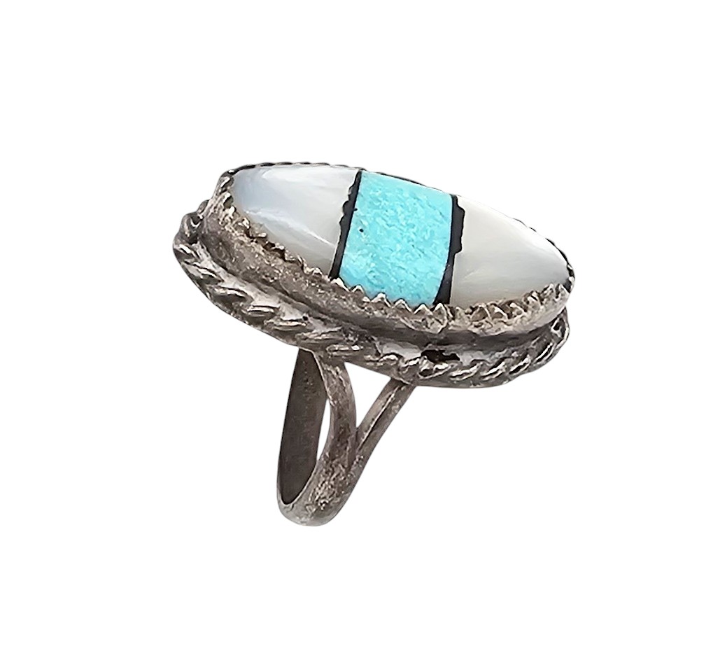 Navajo Turquoise Mother of Pearl Sterling Silver Ring Size 4 3.9 G