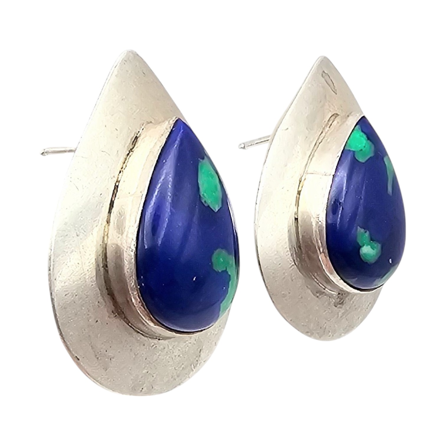 S. J. Native Azurite Sterling Silver Earrings 8.9 G