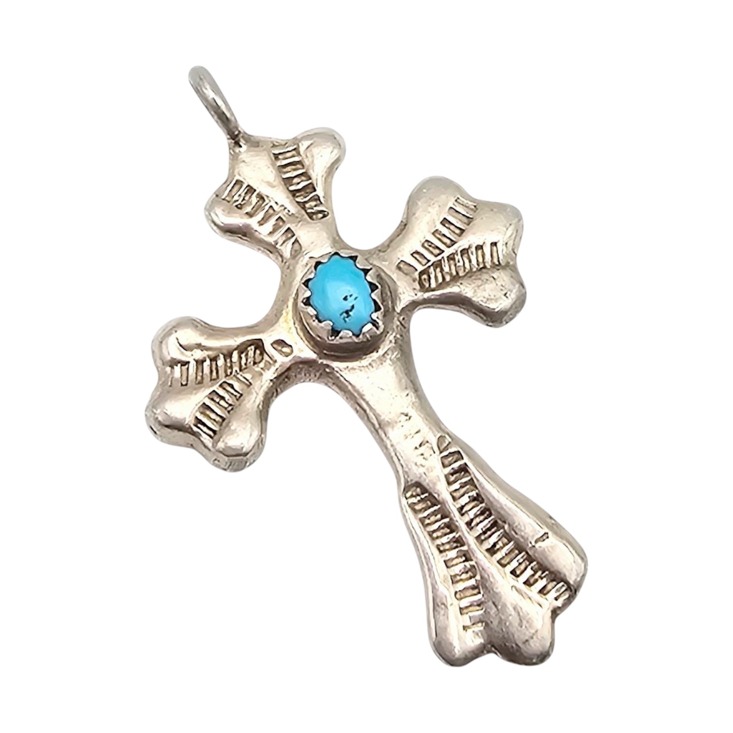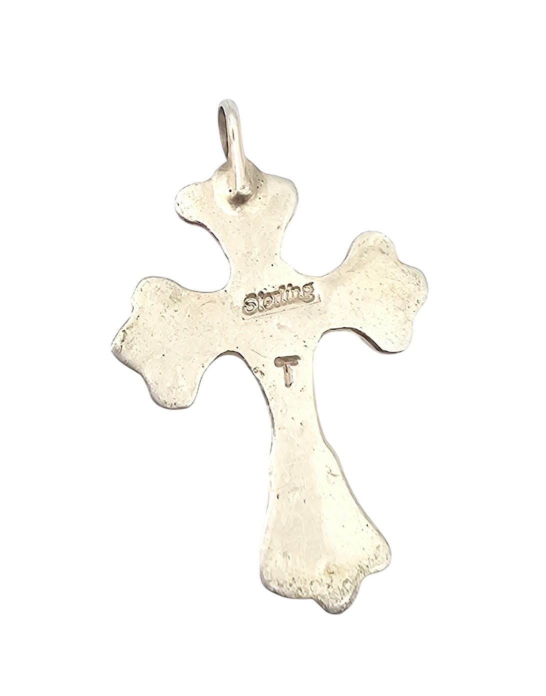 Joe Tom Navajo Turquoise Sterling Silver Cross Pendant 4.5 G