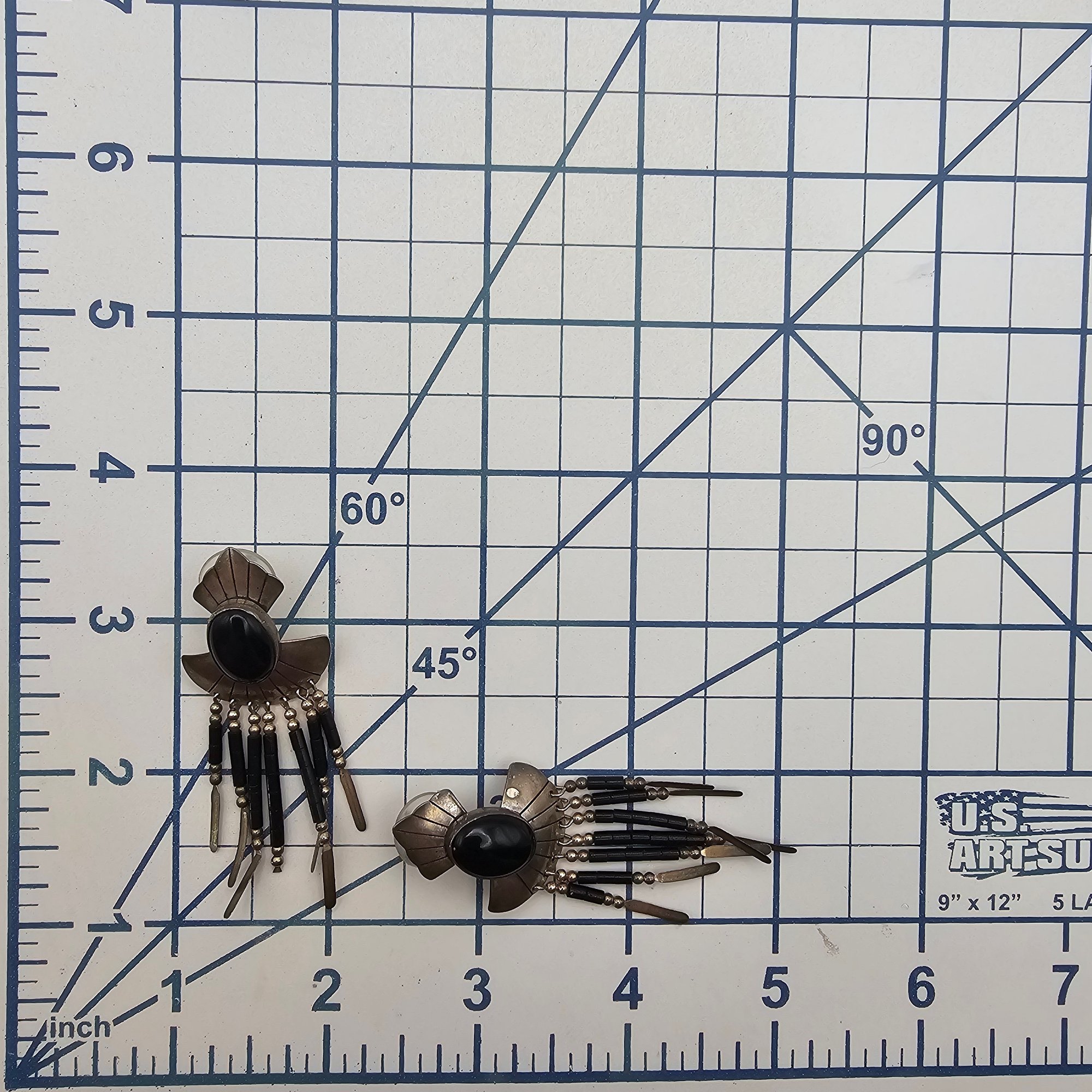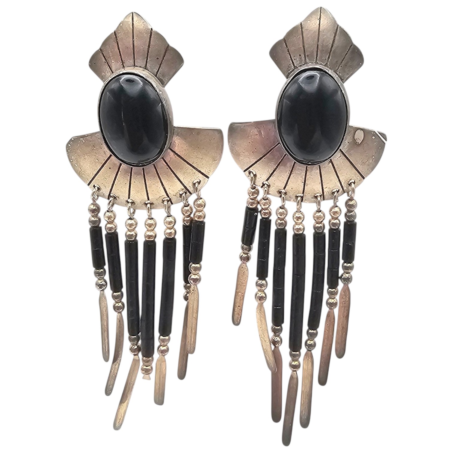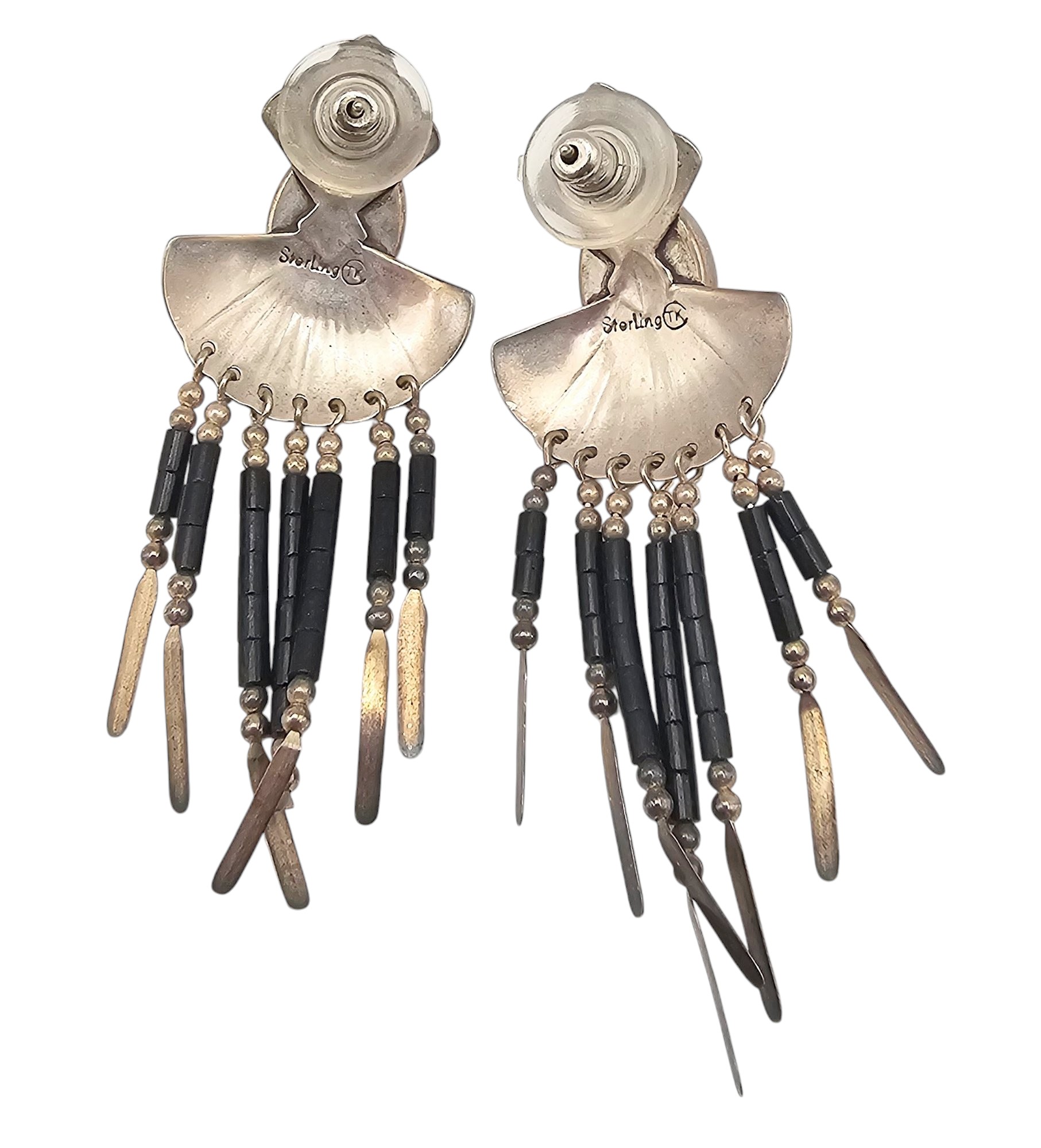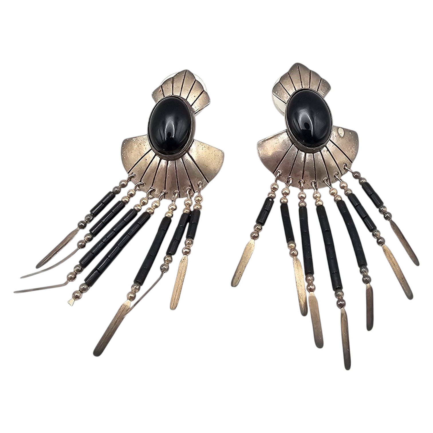 TK Onyx Sterling Silver Fringe Drop Dangle Earrings 10.9 G