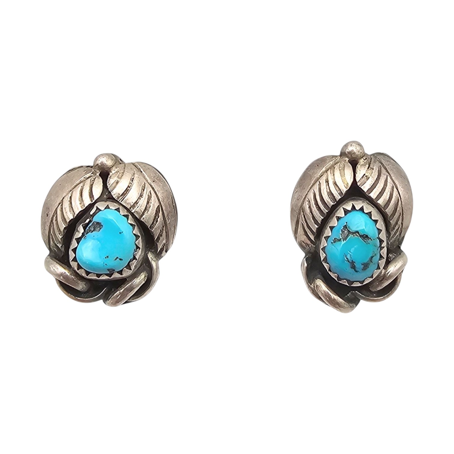 Benjamin James Navajo Turquoise Sterling Silver Earrings 5.4 G